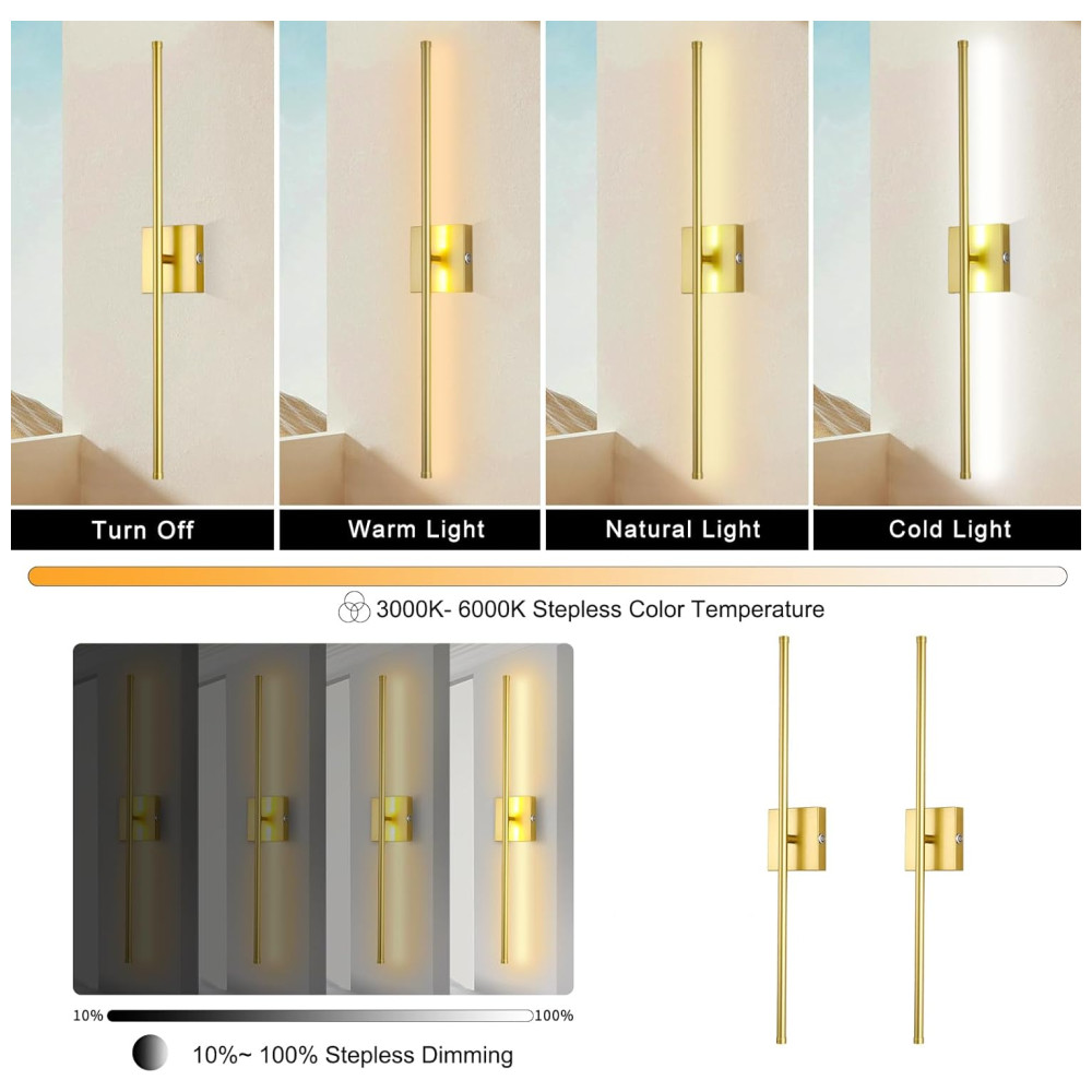 Este conjunto de duas luminárias de parede LED reguláveis oferece uma solução prática e versátil para iluminar diversos ambientes da sua casa. Com escurecimento contínuo de 10% a 100%, você pode ajustar facilmente o brilho para atender às suas necessidades, criando a atmosfera ideal para qualquer ocasião. Além disso, a luminária oferece três opções de temperatura de cor: 3000K (luz quente), 4500K (branco neutro) e 6000K (luz fria), permitindo um controle total sobre a iluminação e criando uma sensação acolhedora em qualquer ambiente.