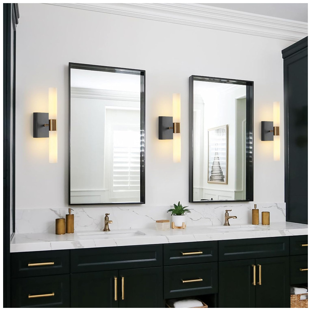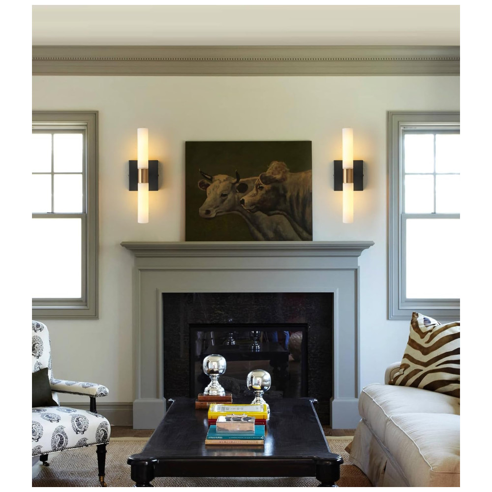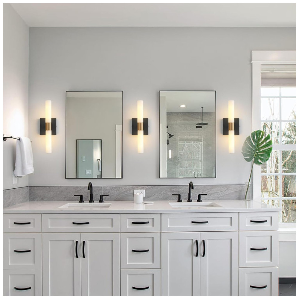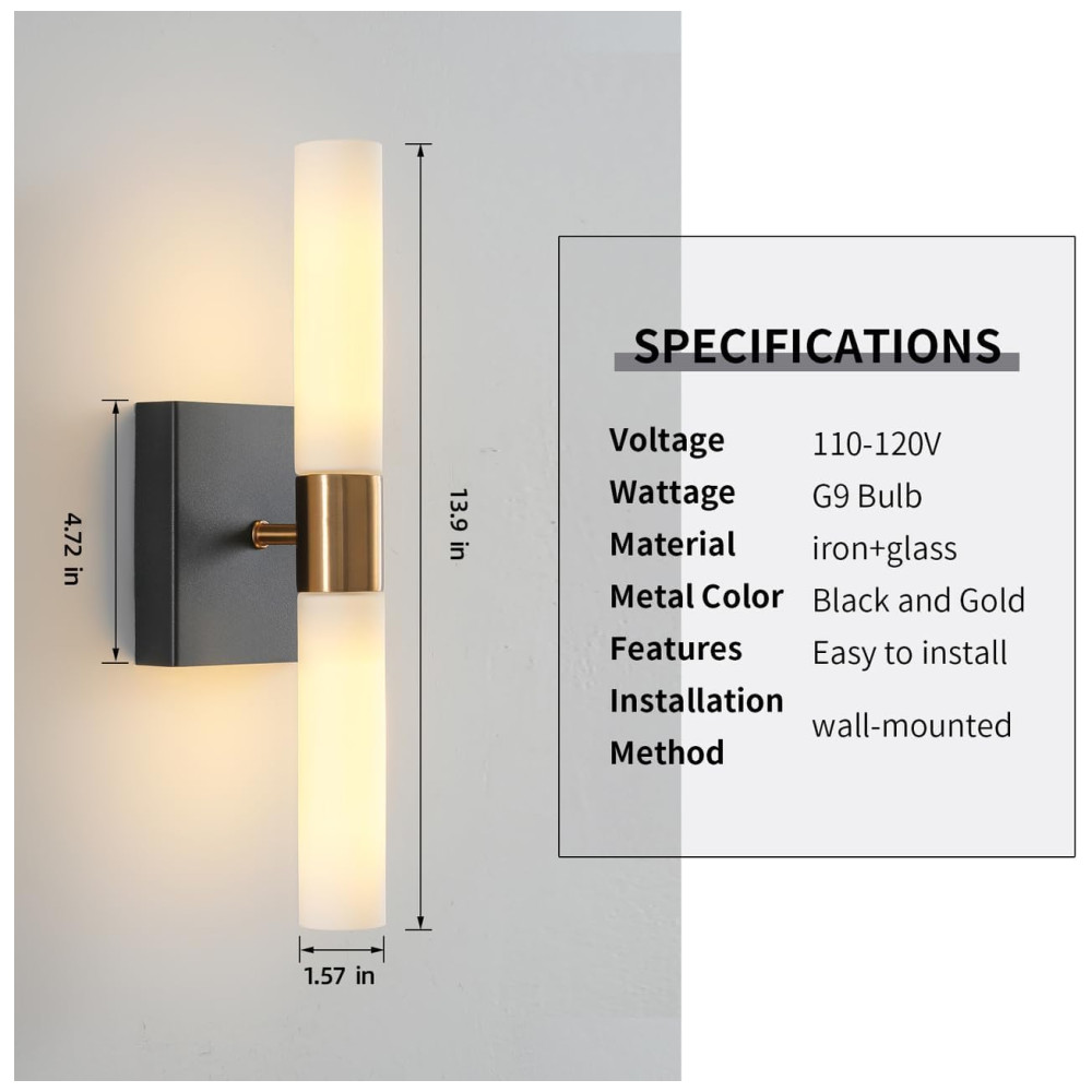 Este conjunto de 2 arandelas de vidro possui um estilo de design industrial moderno e vintage, elegante e bonito. Os tubos de vidro fosco permitem que as luzes difundam lindamente e podem ser instalados tanto na direção vertical quanto na horizontal. São perfeitos para banheiro, espelho, lavabo, corredor, cozinha, sala de estar e lavanderia.