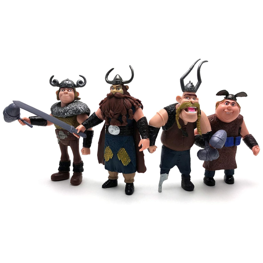 Conjunto de Mini Figuras de Ação Vikings Toysvill Hiccup Astrid Stoick Gobber Snotlout Fishlegs Tuffnut e Ruffnut – Kit com 8 peças
