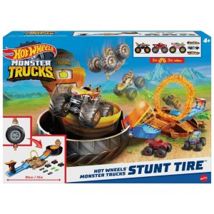 O conjunto de pneus de acrobacias Hot Wheels Monster Trucks é perfeito para crianças que adoram ação e diversão. Com mais de 35 polegadas de comprimento, o conjunto apresenta uma arena de acrobacias no topo para ação de colisão e destruição. Além disso, o conjunto vem com três Monster Trucks e três veículos Hot Wheels em escala 164 para horas de brincadeira.