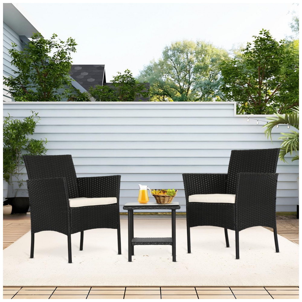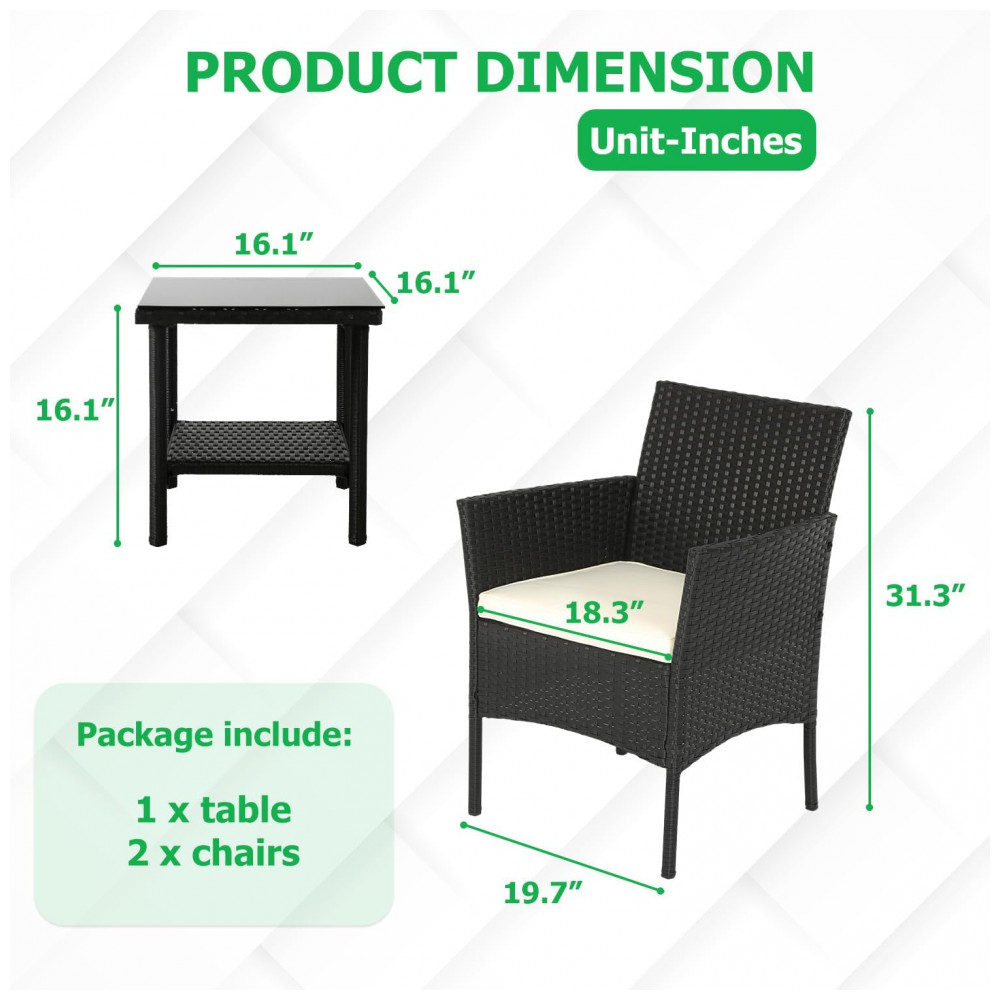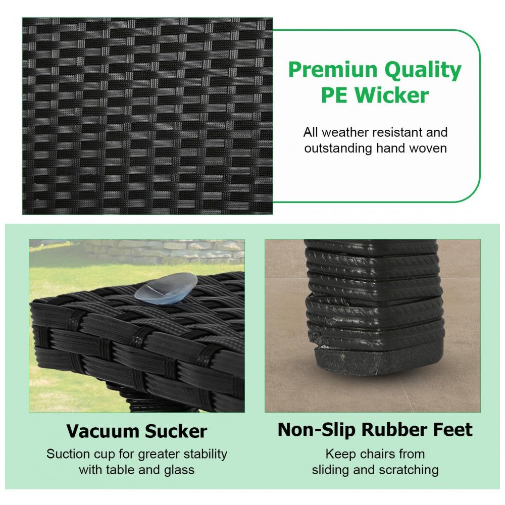 Conjunto de Móveis de Exterior de Vime FDW com 3 Cadeiras de Pátio em Rattan e Mesa de Café para Quintal Jardim Varanda Piscina e Sacada – Preto Pr