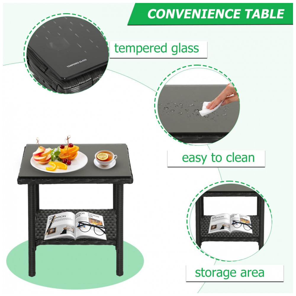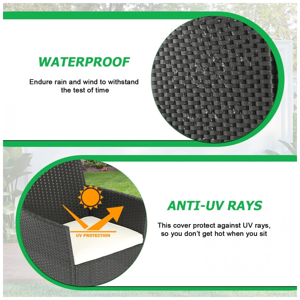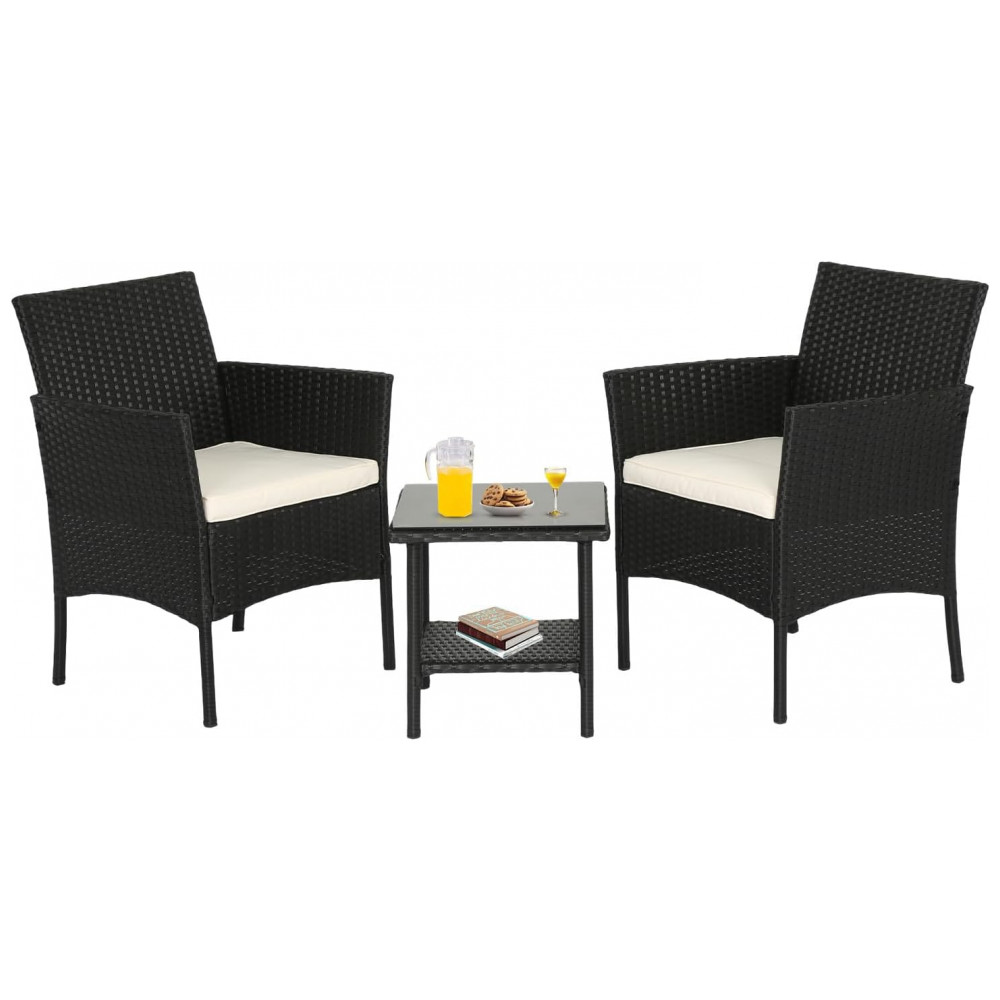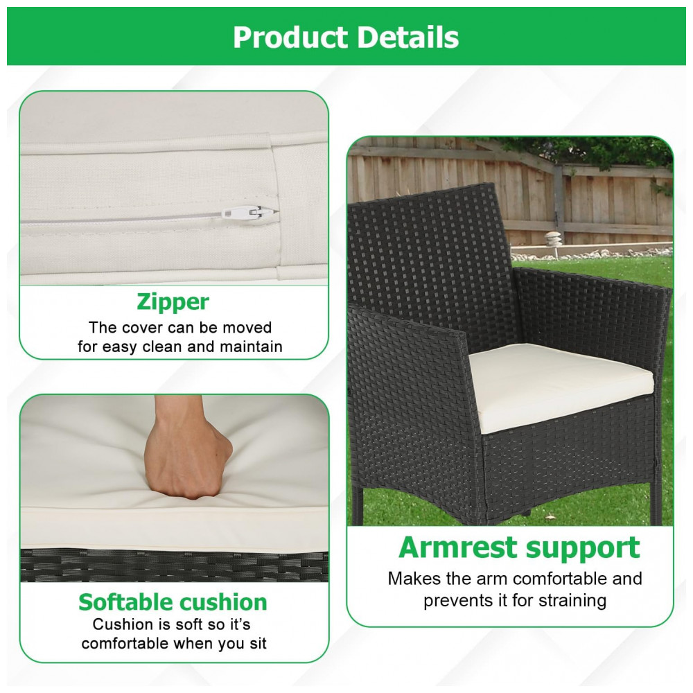 Conjunto de Móveis de Exterior de Vime FDW com 3 Cadeiras de Pátio em Rattan e Mesa de Café para Quintal Jardim Varanda Piscina e Sacada – Preto Pr