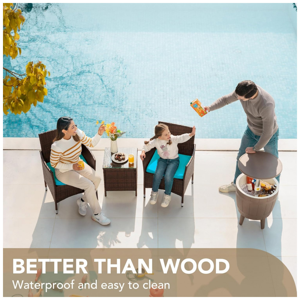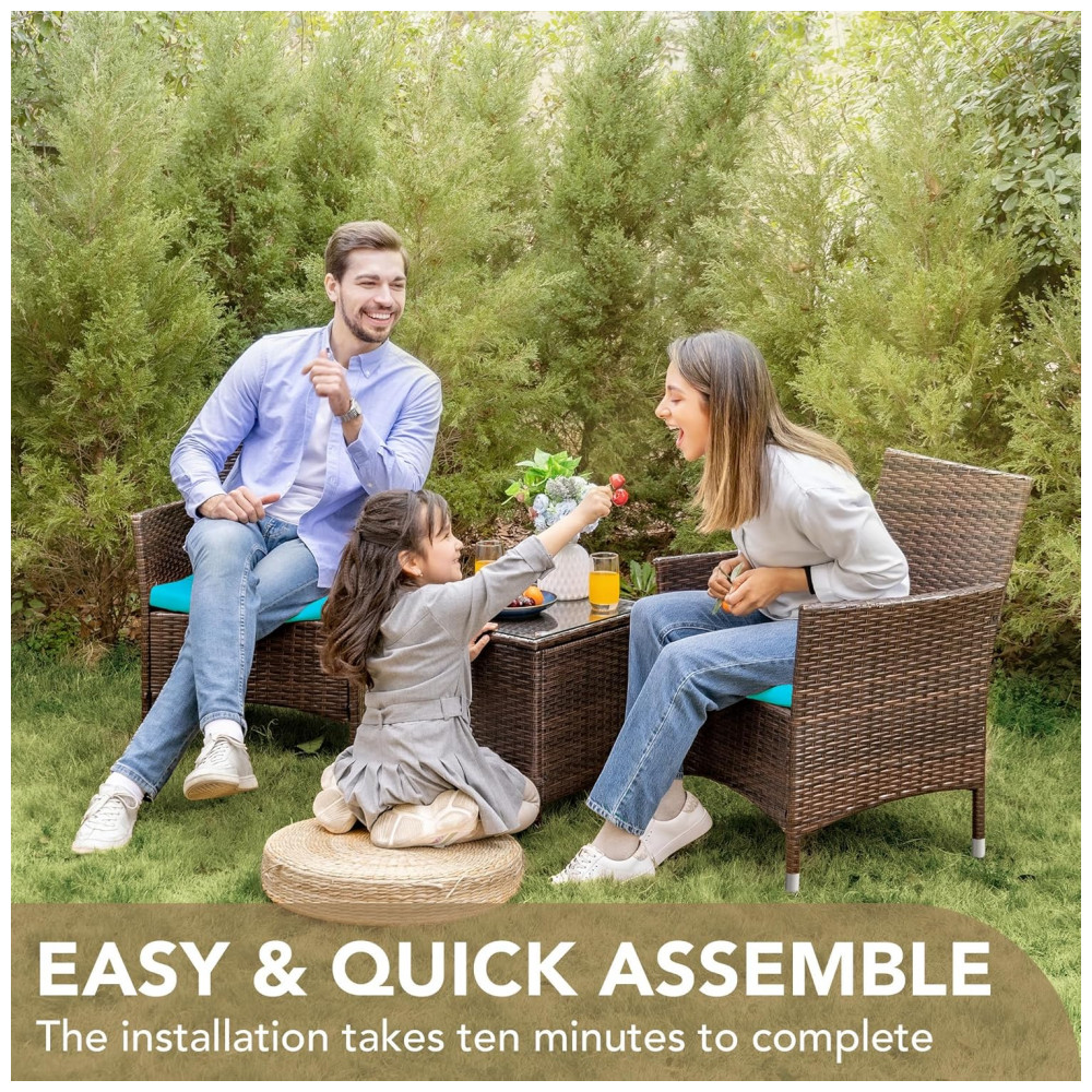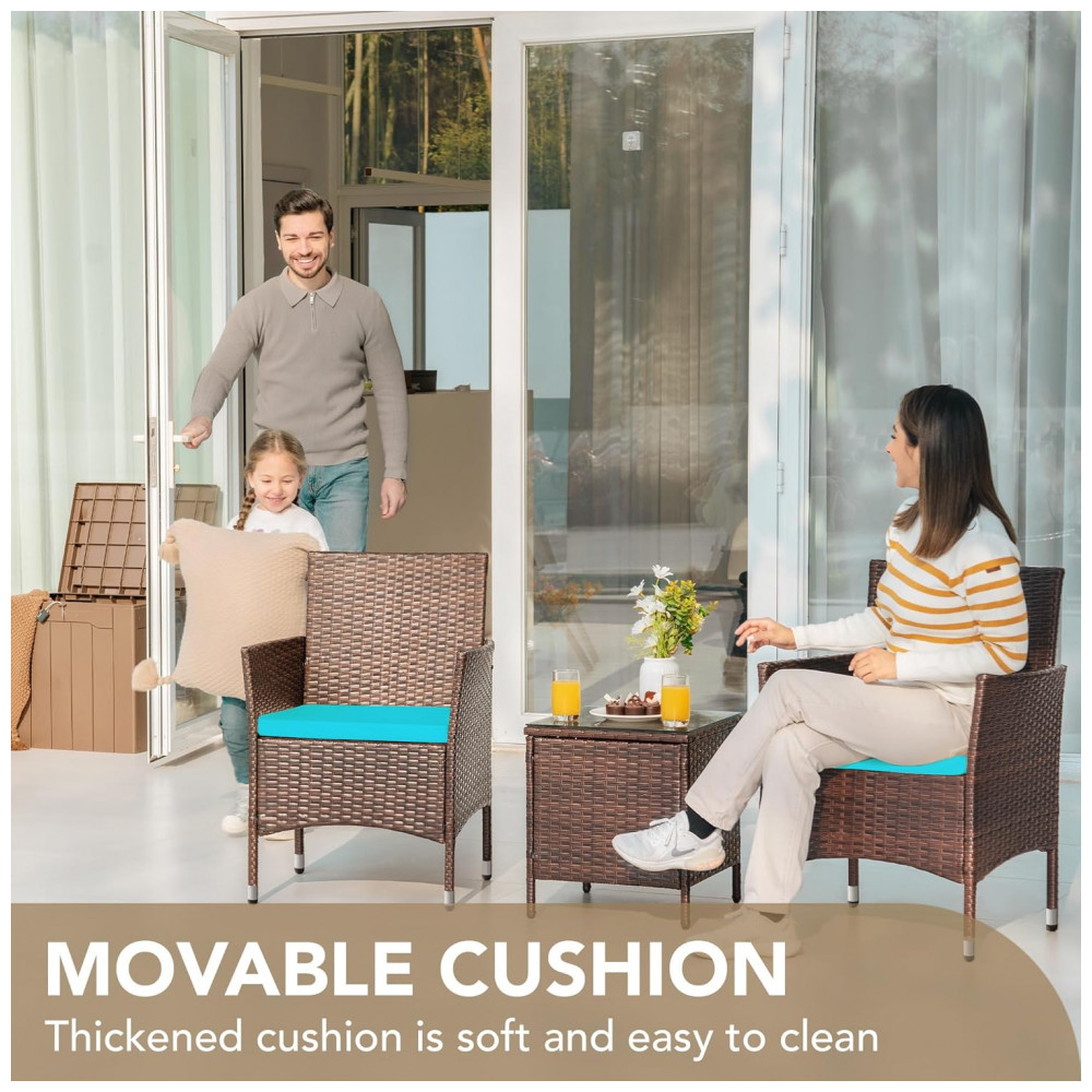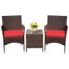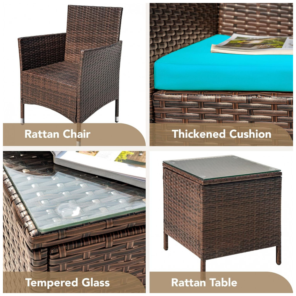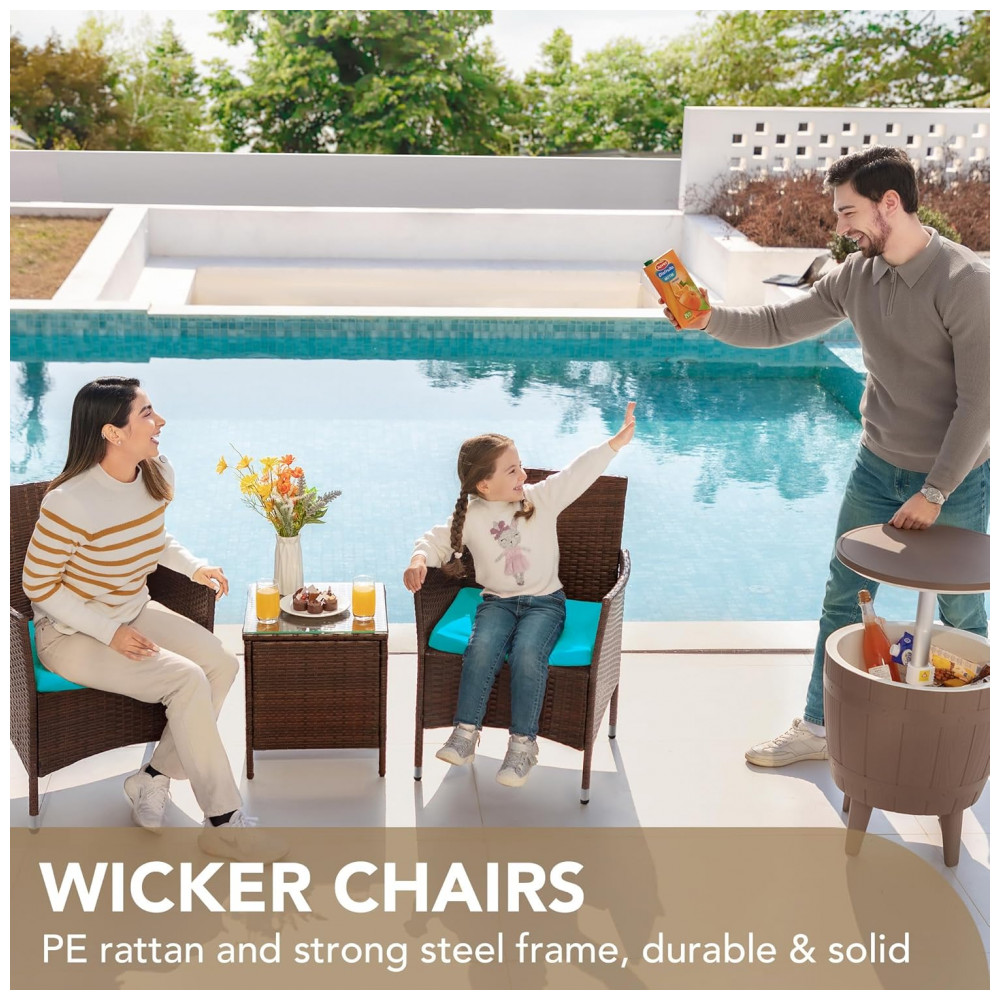 Conjunto de Móveis de Jardim Devoko 3 Peças em Vime PE – Cadeiras com Mesa para Área Externa Marrom/Azul