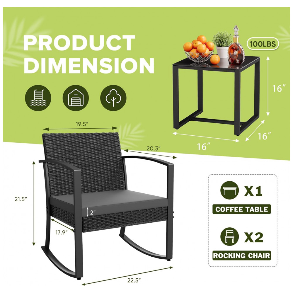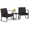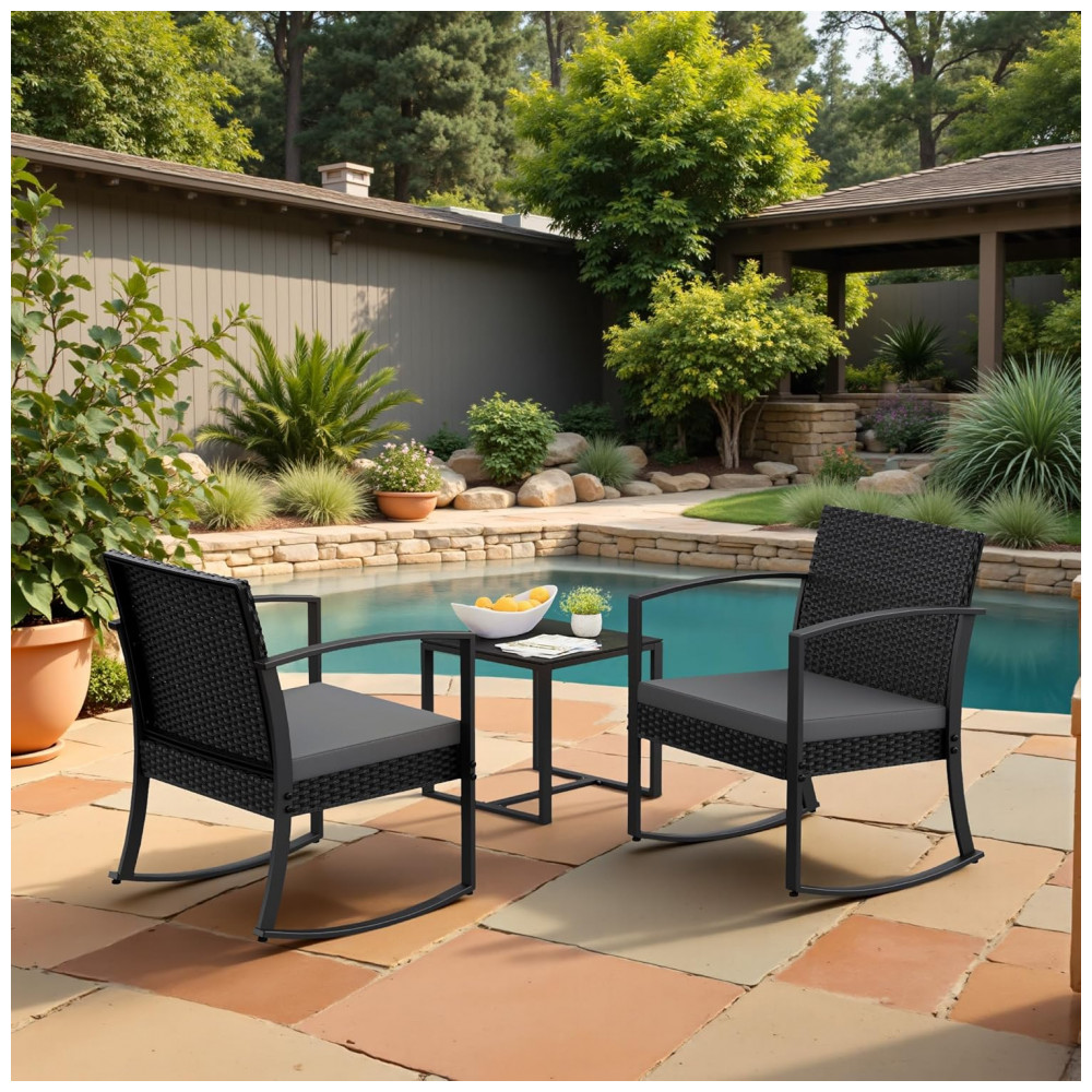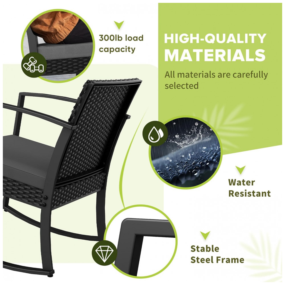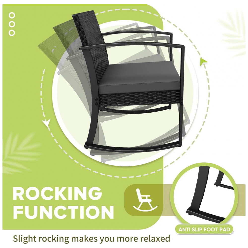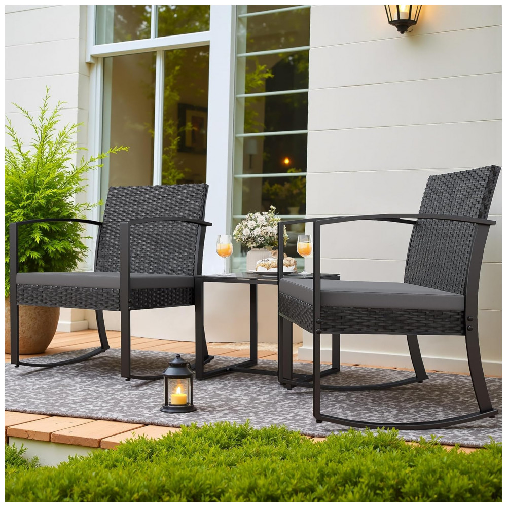 Conjunto de Móveis de Pátio Homall 3 Peças – Conjunto de Bistrô Externo de Resina com Cadeiras de Balanço Acolchoadas e Mesa para Varanda