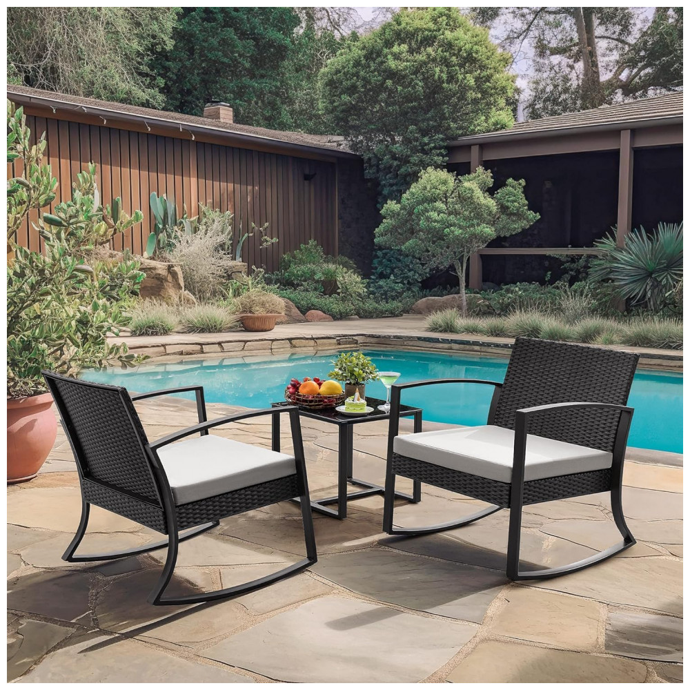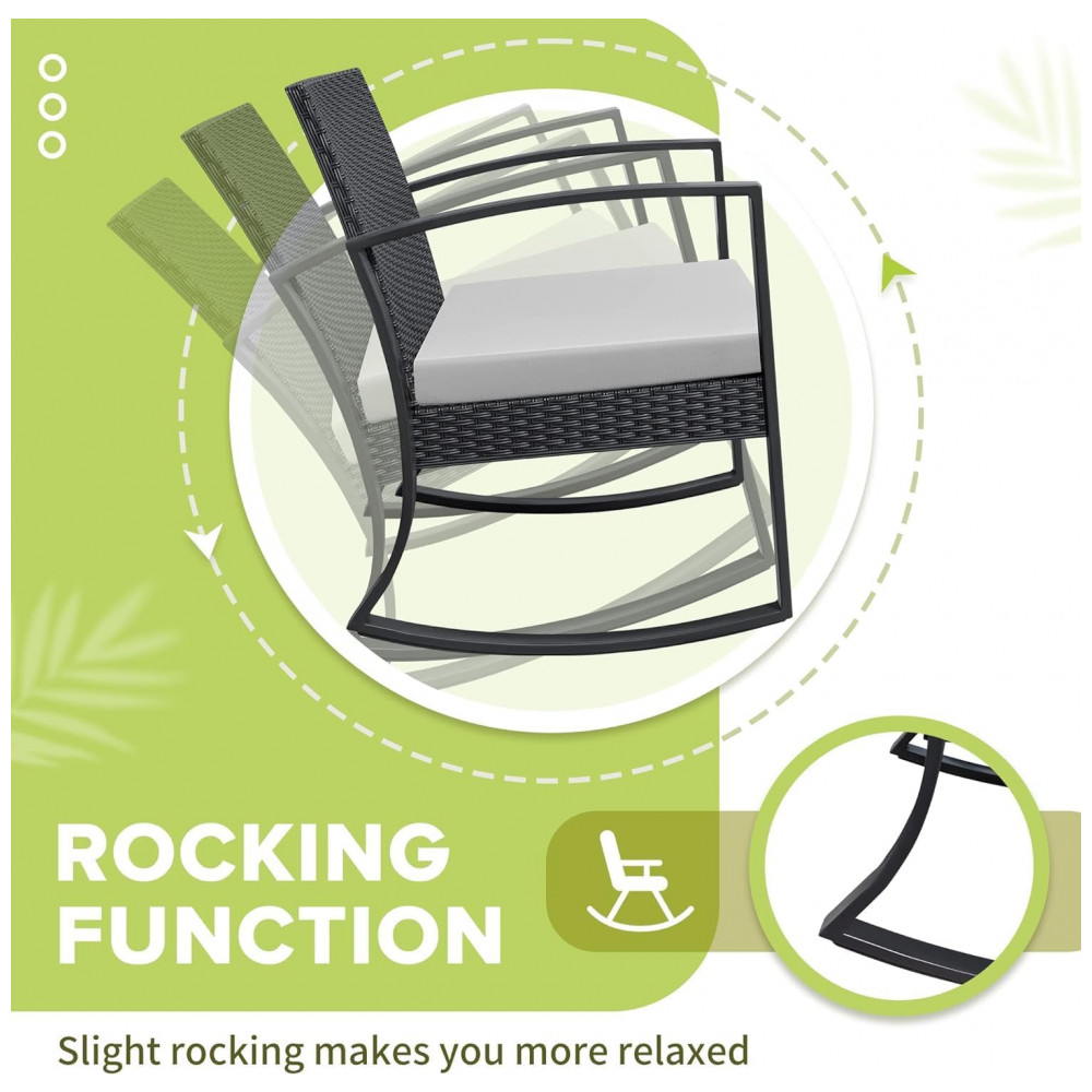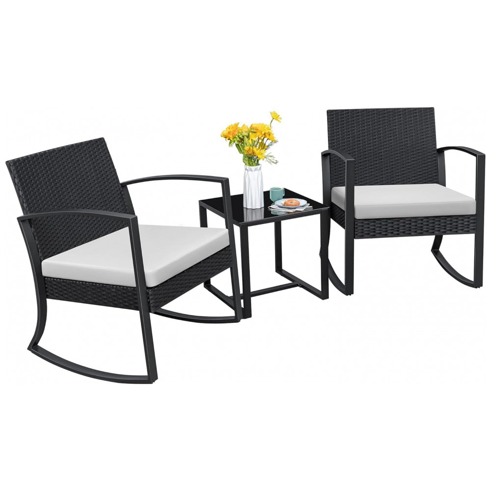 Conjunto de Móveis para Área Externa Homall 3 Peças Conjunto de Bistrô Exterior com Cadeiras de Balanço e Mesa para Varanda Piscina Sacada e Quintal