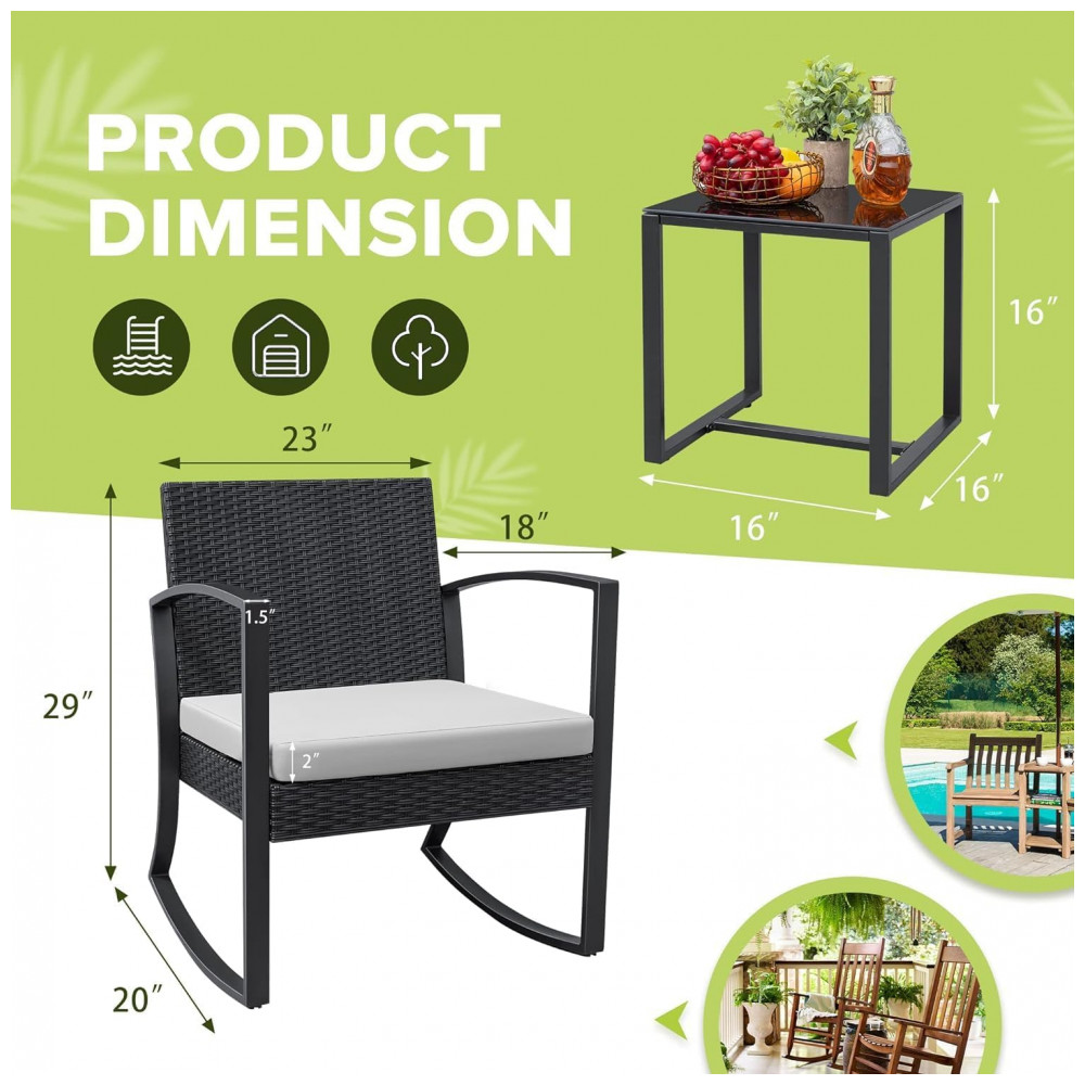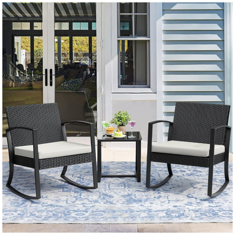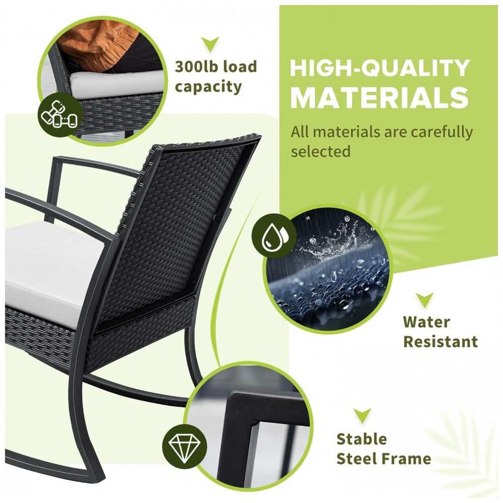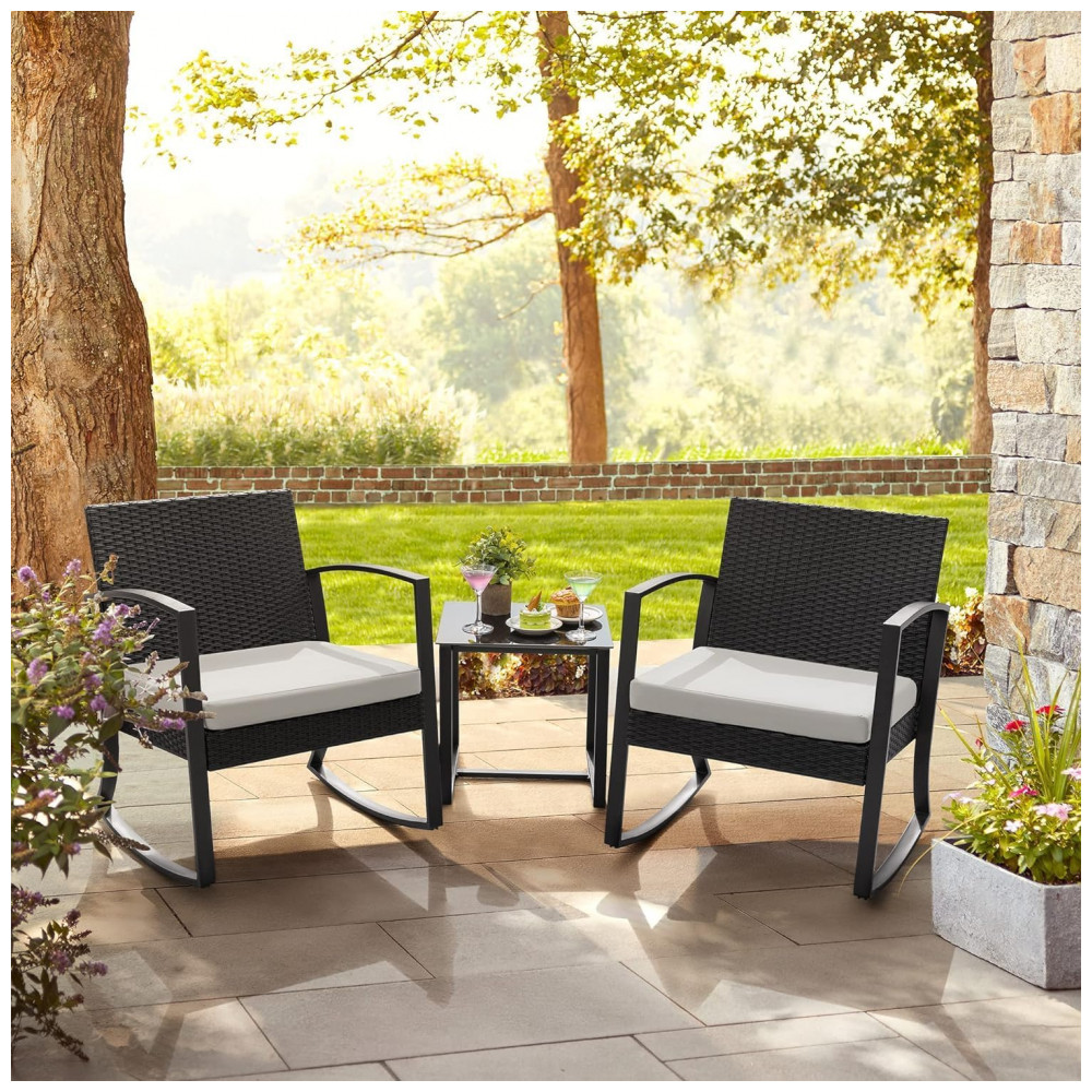 Conjunto de Móveis para Área Externa Homall 3 Peças Conjunto de Bistrô Exterior com Cadeiras de Balanço e Mesa para Varanda Piscina Sacada e Quintal