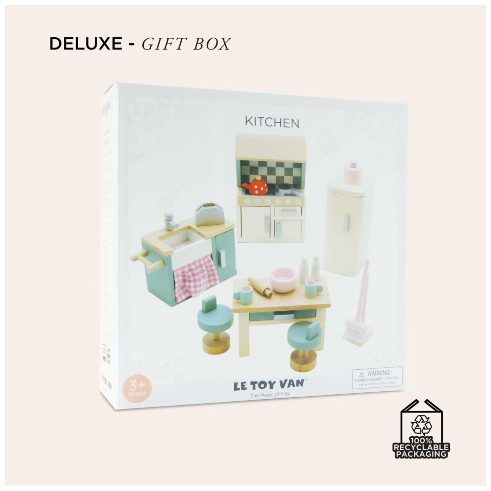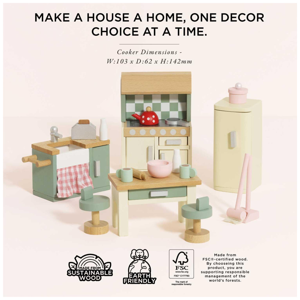 Conjunto de Brinquedo de Madeira Colorido e Educacional: Este conjunto de cozinha completo, com móveis e acessórios para casa de bonecas, é perfeito para o seu pequeno chef! Perfeitamente dimensionado para caber em qualquer uma das casas de bonecas de madeira Le Toy Van, proporciona horas de diversão e aprendizado.