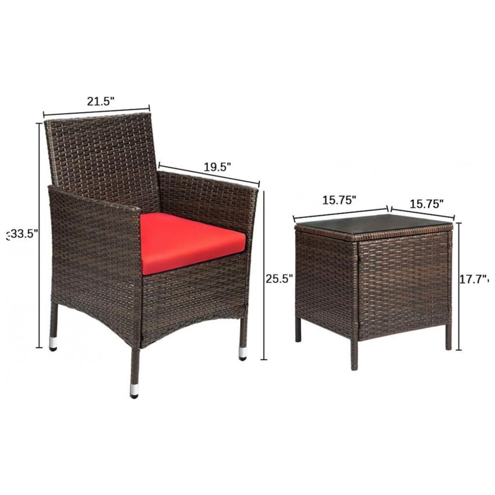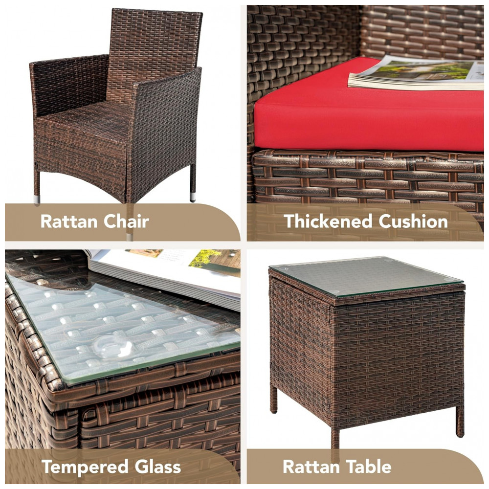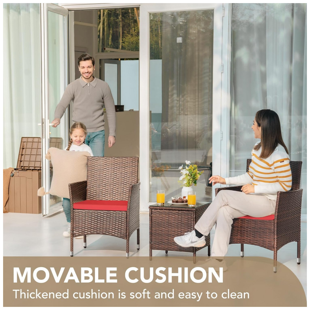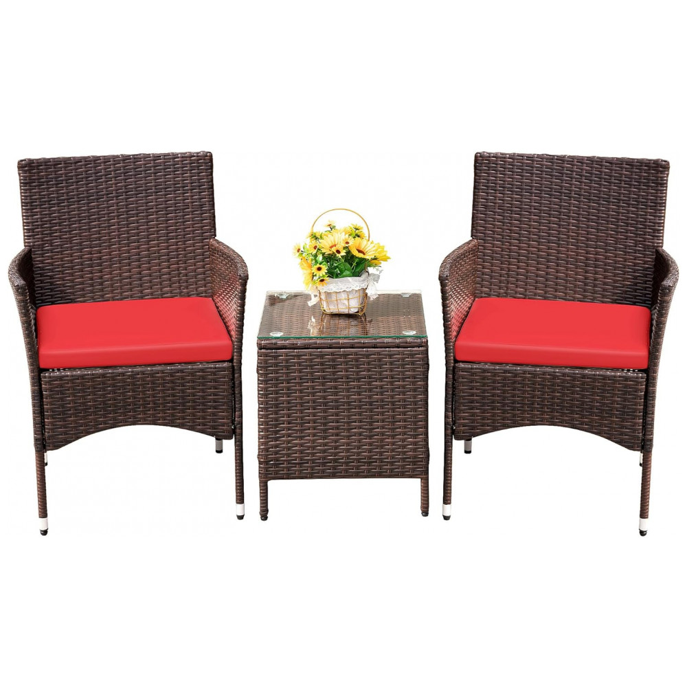 Conjunto de Móveis para Varanda Devoko 3 Peças em Vime PE com Cadeiras e Mesa de Jardim ao Ar Livre Marrom/Vermelho