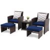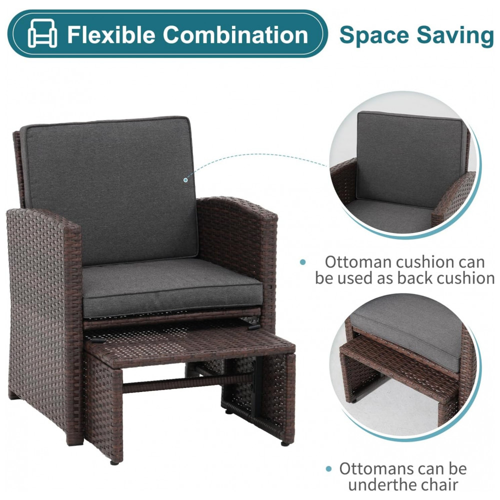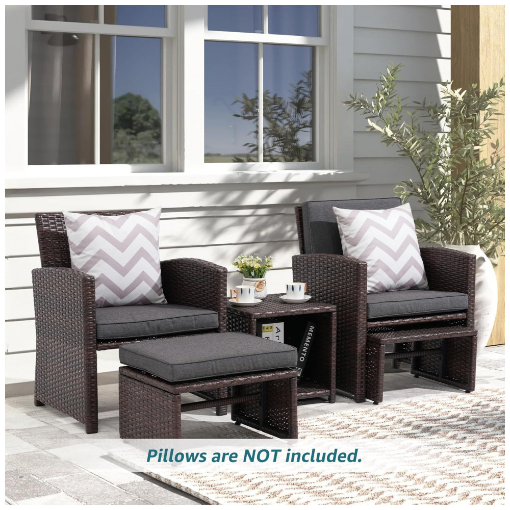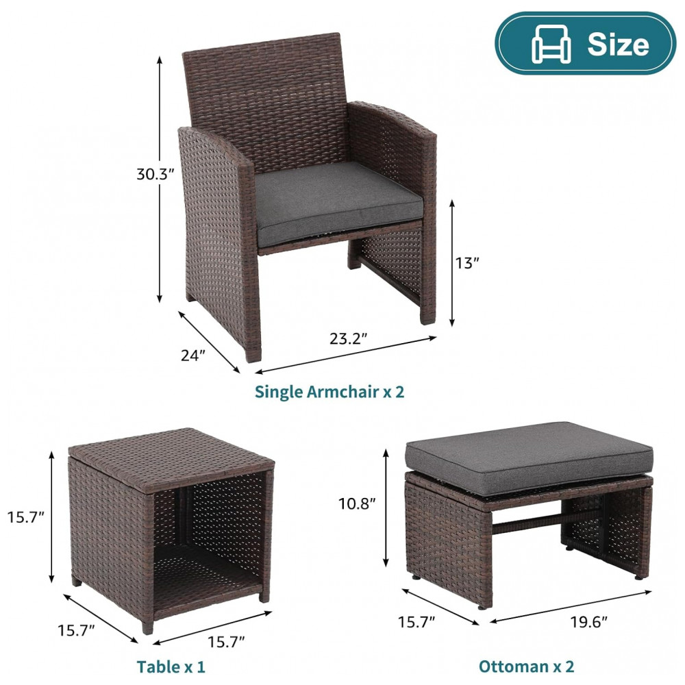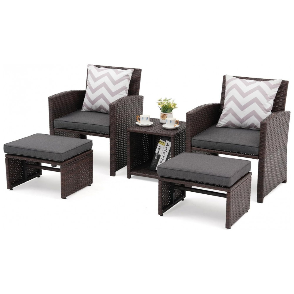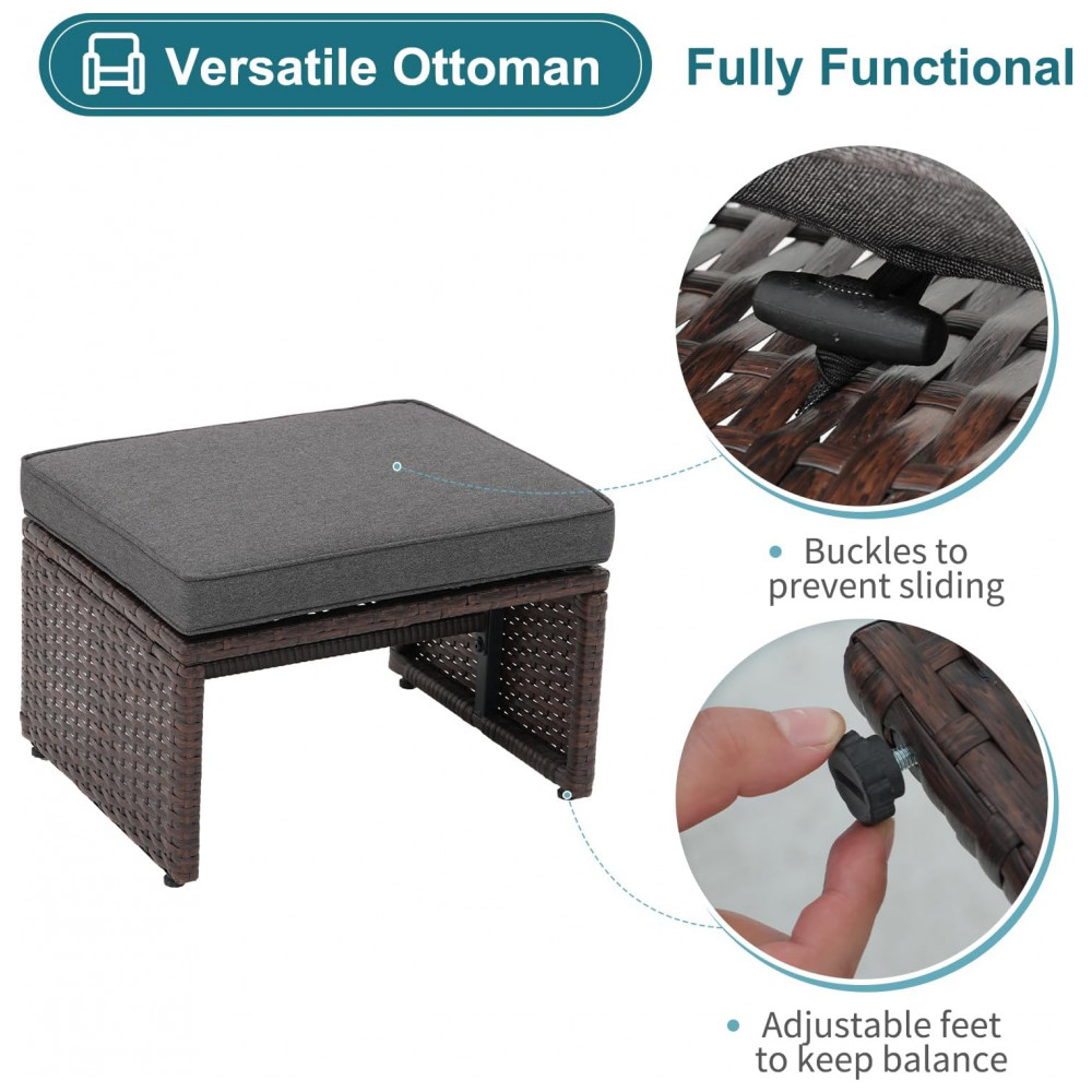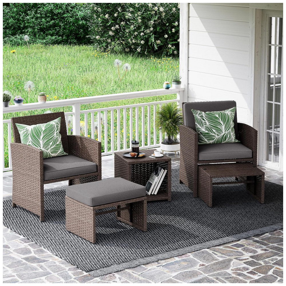 Conjunto de Móveis para Varanda OC OrangeCasual 5 Peças com Almofadas Cadeira de Vime Marrom com Otomano Mesa de Armazenamento para Jardim e Varanda