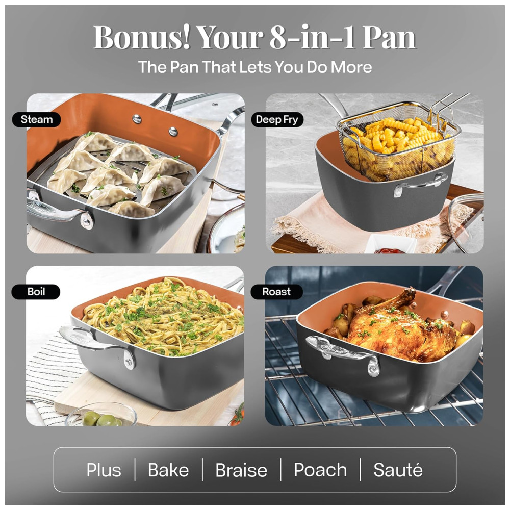 As panelas Gotham Steel são construídas para anos de uso. Componentes incluídos conjunto de panelas e assadeiras