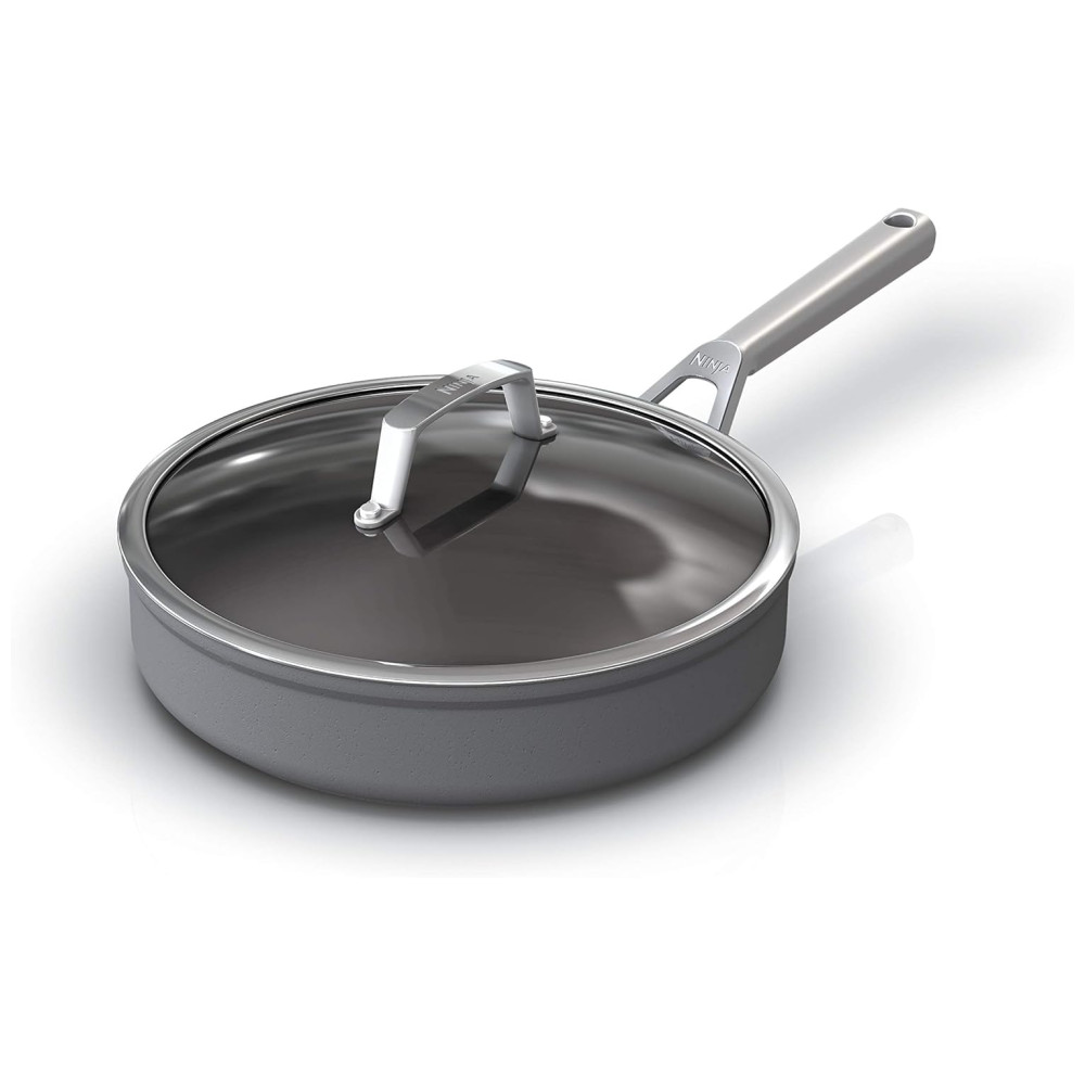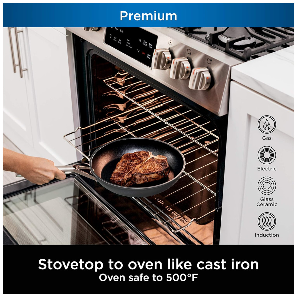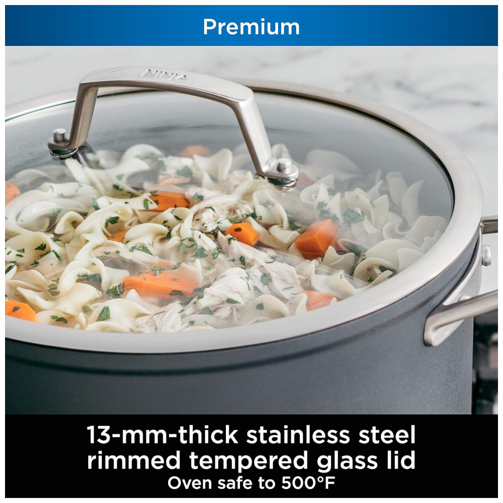 Apresentando o Conjunto de Panelas Ninja C39800 Foodi NeverStick Premium de 12 Peças, em Alumínio Anodizado Duro, Antiaderente, Durável e Seguro para Forno até 260°C, na cor Cinza Ardósia.
