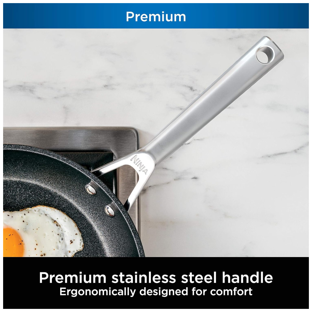Melhor Retenção de Calor: A base de alumínio de calibre pesado, com 4,5 mm de espessura, é projetada para evitar pontos quentes e permitir uma distribuição rápida e uniforme do calor para resultados perfeitos toda vez. Contém 30% mais alumínio do que a série Ninja Foodi NeverStick Essential C100.