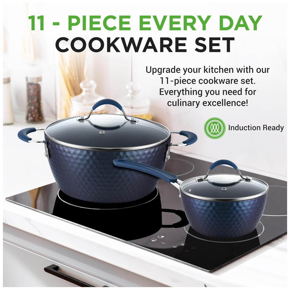 Conjunto de Panelas Antiaderentes e Utensílios 11 Peças NUTRICHEF NCCW11DS Azul