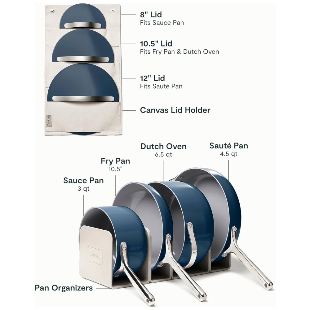 Conjunto de Panelas Cerâmicas Antiaderentes Caraway 12 Peças Azul Marinho Inclui Panelas Tampa e Organizadores Compatível com Todos os Fogões