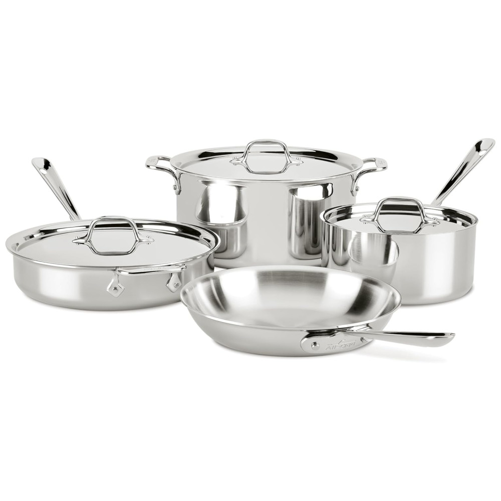 Conjunto de Panelas de Aço Inoxidável 7 Peças para Forno de Indução Qualidade Profissional para sua Cozinha All Clad Prata