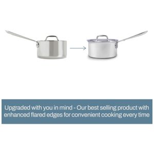 Este conjunto completo de 7 peças em aço inoxidável inclui uma frigideira de 25 cm, uma panela de 1,87 litros com tampa, uma frigideira de 2,80 litros com tampa e uma panela de 5,60 litros com tampa. A superfície de aço inoxidável 1810 de alta qualidade queima perfeitamente e é ideal para desengordurar molhos em frigideiras. Este conjunto de panelas e frigideiras é lavável à mão e é construído para durar, confiável por gerações de chefs.