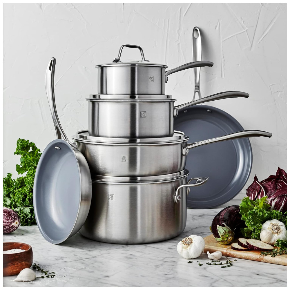 Conjunto de Panelas e Frigideiras Antiaderente em 3 Camadas de Aço Inoxidável 10 Peças ZWILLING