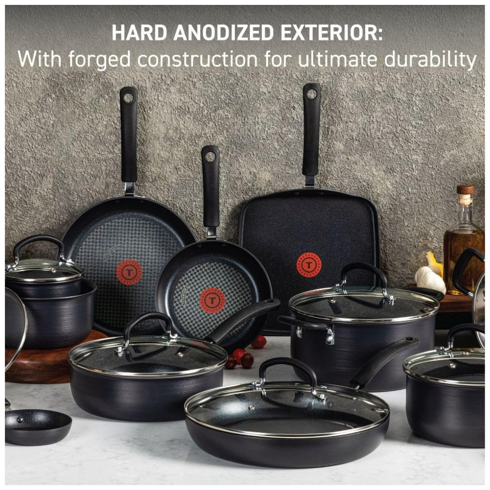 Conjunto de Panelas e Frigideiras Antiaderentes Anodizadas 17 Peças T FAL E765SH Cinza