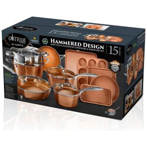 Conjunto de Panelas e Frigideiras Antiaderentes com Revestimento Cerâmico 15 Peças GOTHAM STEEL Cobre