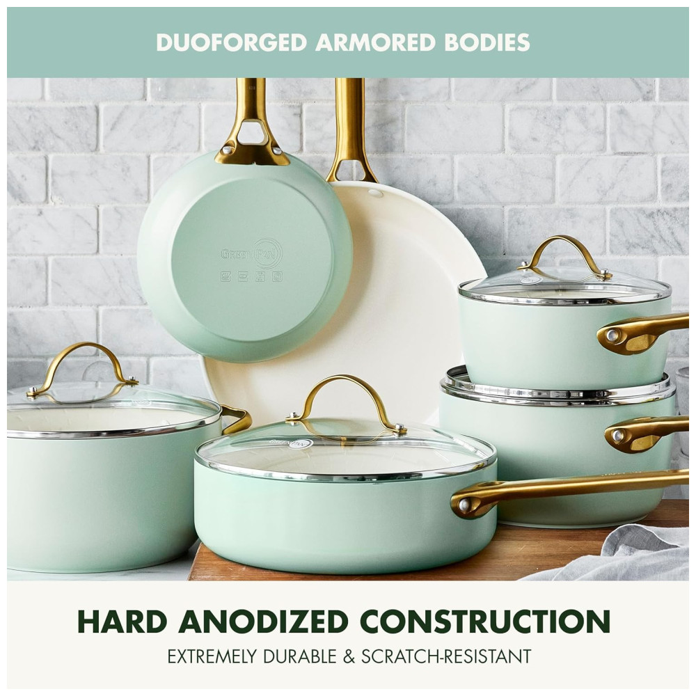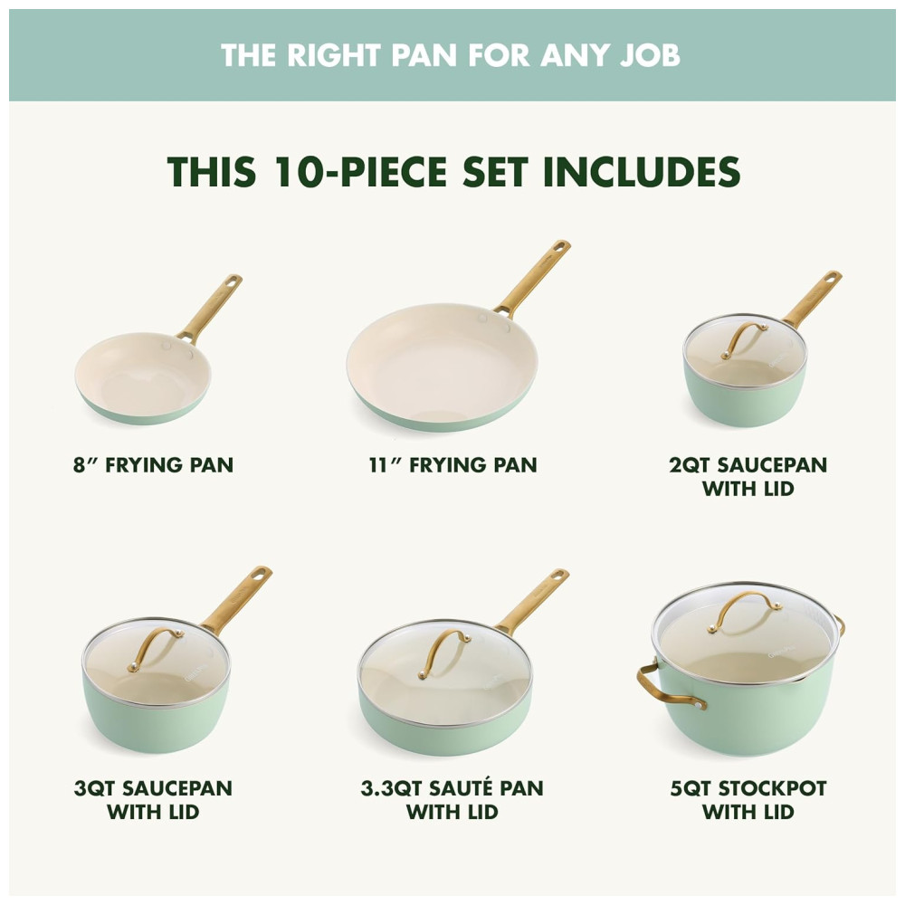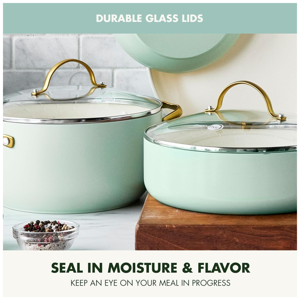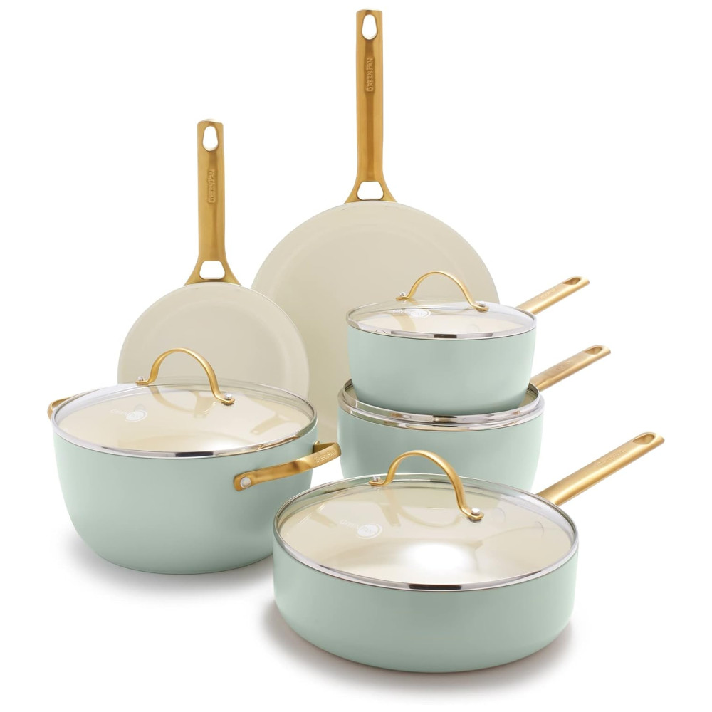 Conjunto de Panelas e Frigideiras Antiaderentes com Revestimento de Cerâmica, 10 Peças, GREENPAN CC005356 001, Verde