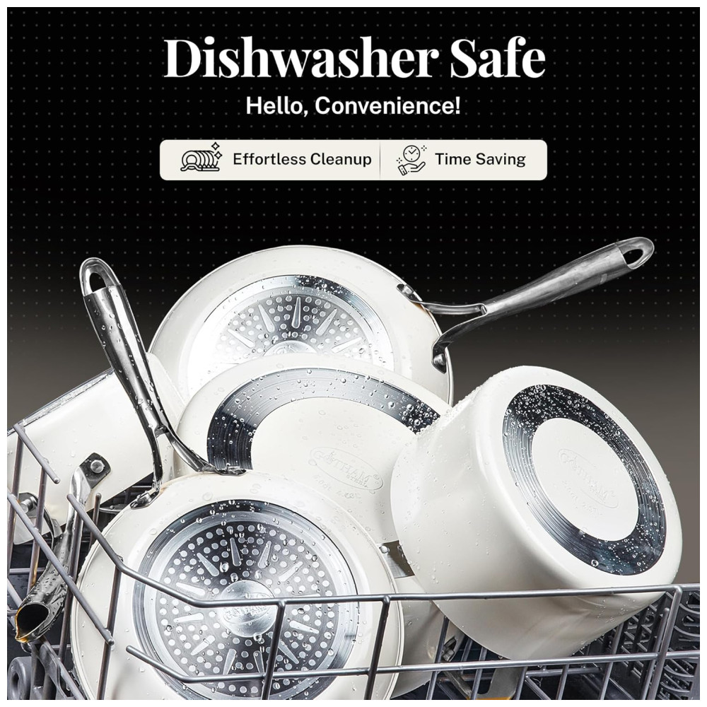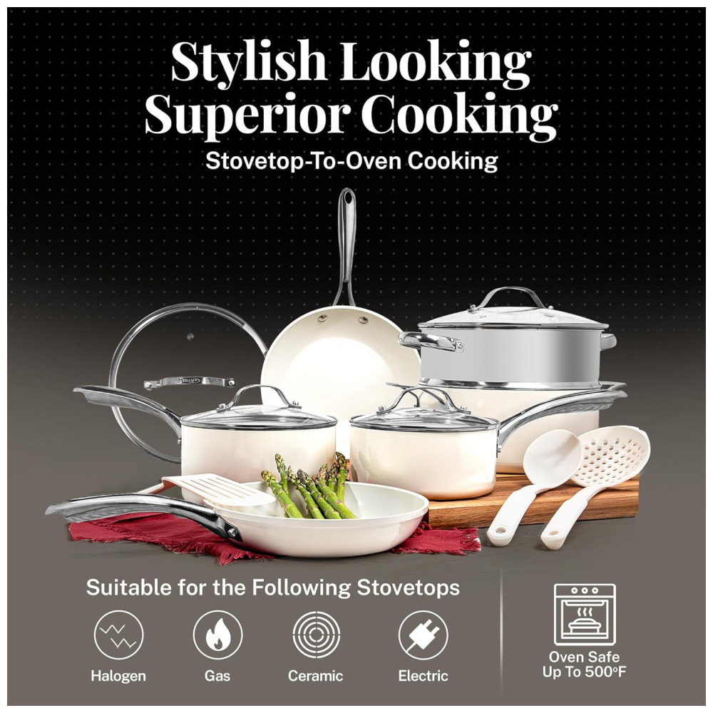 Conjunto de Panelas e Frigideiras Antiaderentes de Cerâmica não Tóxica 20 Peças com Acessórios Gotham Steel Creme Branco