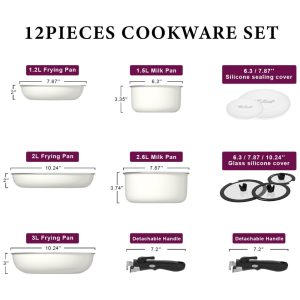 Conjunto de Panelas e Frigideiras Antiaderentes em Alumínio com 12 Peças e Alça Removível Motase Branco