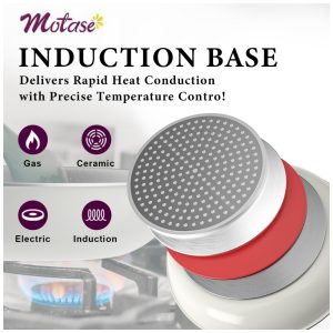 Adequado para todos os fogões: A base magnética ampliada de alta condutividade aquece rapidamente e de maneira uniforme, sendo compatível com todos os tipos de fogões, incluindo os de indução, para uma experiência de cozimento versátil e sem preocupações.