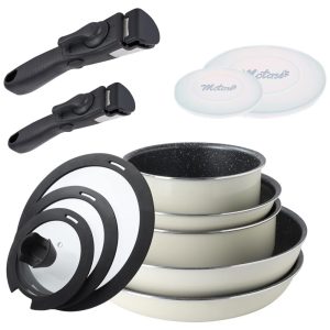 Conjunto de Panelas e Frigideiras Antiaderentes em Alumínio com 12 Peças e Alça Removível Motase Branco