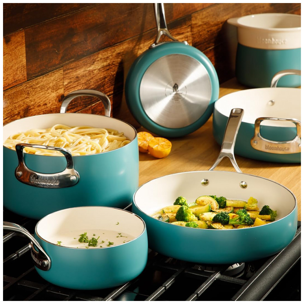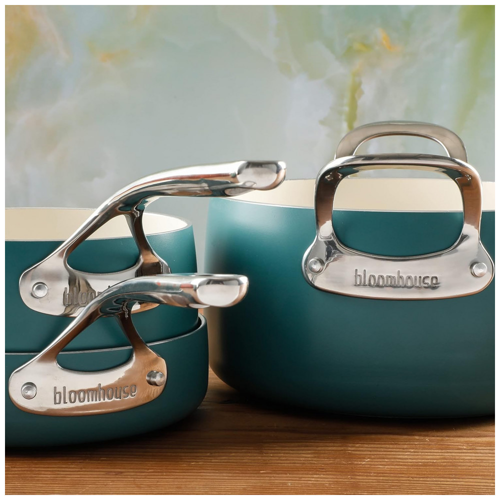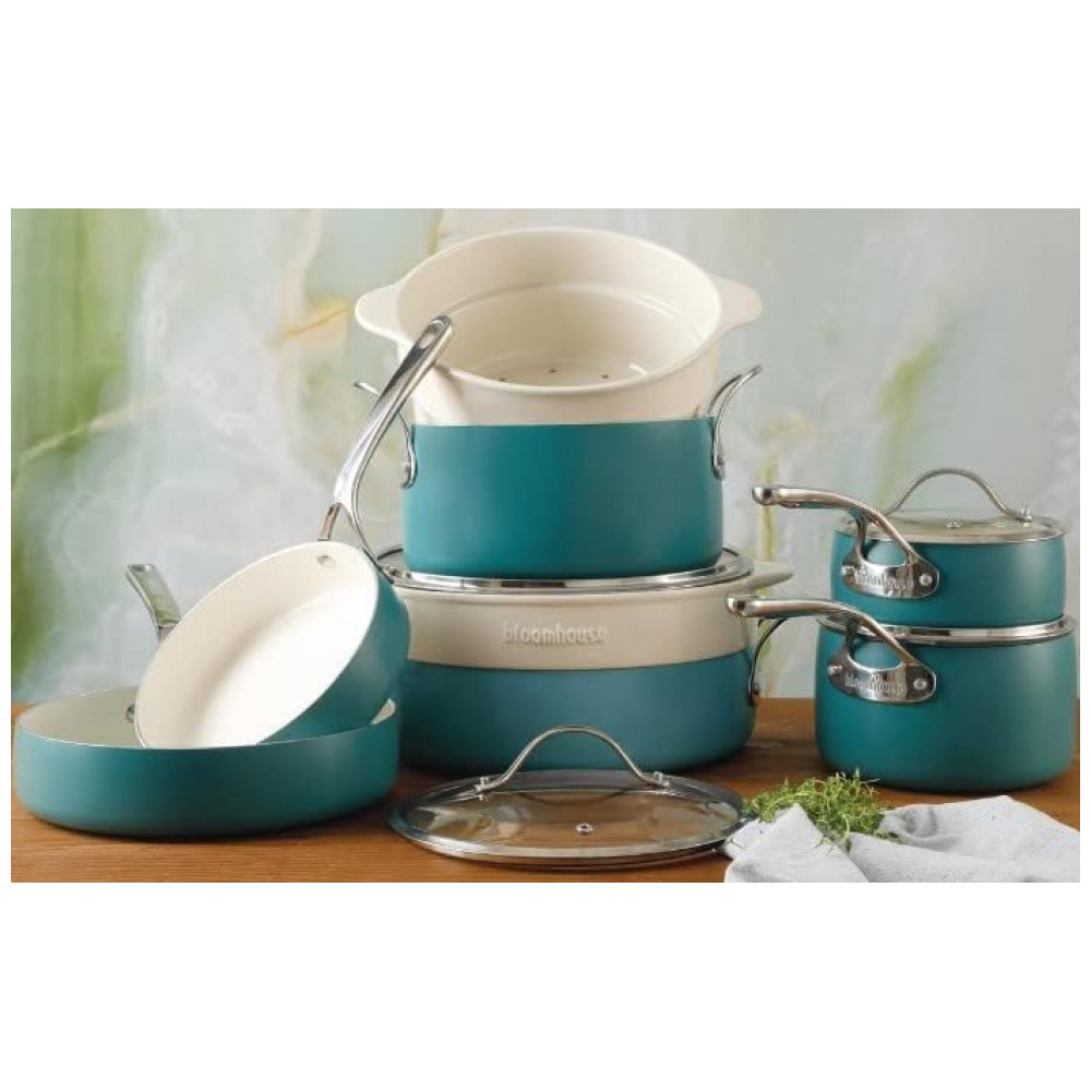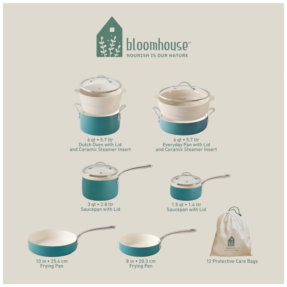 Conjunto de Panelas e Frigideiras Antiaderentes em Alumínio com Revestimento Cerâmico 12 Peças Bloomhouse Azul