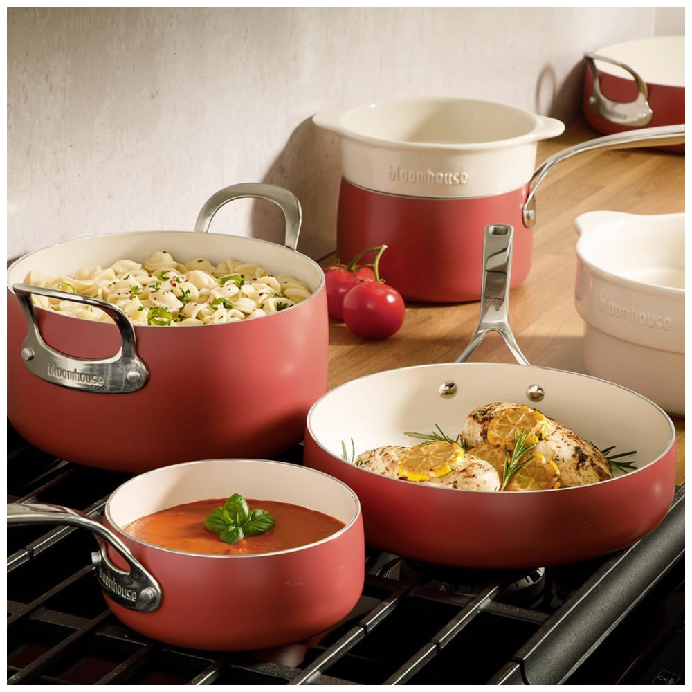 Conjunto de Panelas e Frigideiras Antiaderentes em Alumínio com Revestimento Cerâmico 12 Peças Bloomhouse Laranja