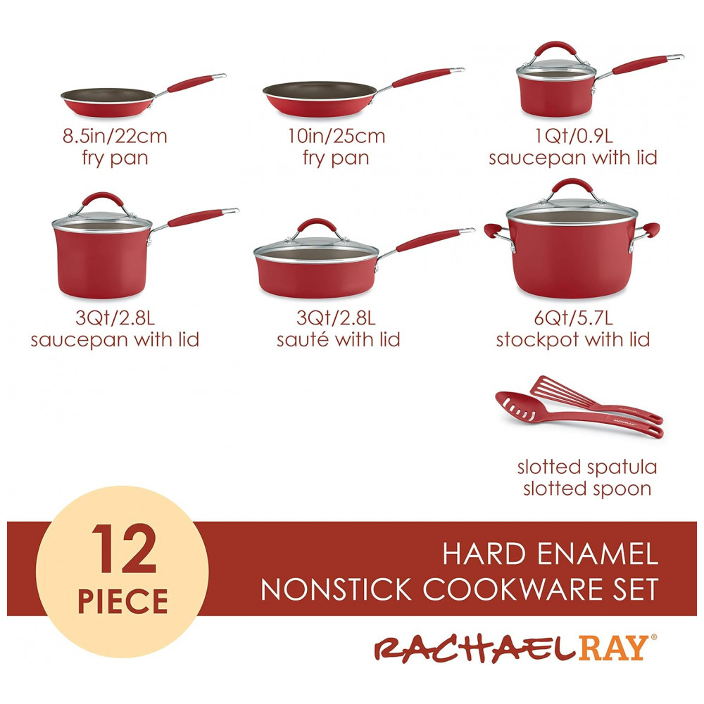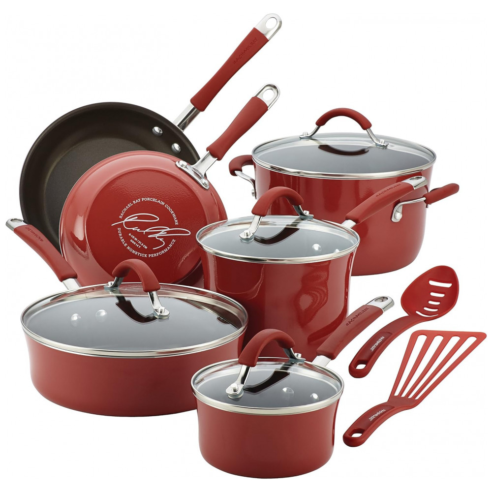 Conjunto de Panelas e Frigideiras Antiaderentes em Alumínio com Utensílios 12 Peças Rachael Ray Vermelho Escuro