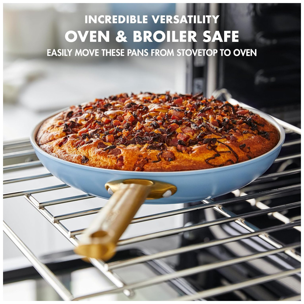 As tampas de vidro duráveis proporcionam uma visão fácil das refeições, enquanto as alças de aço inoxidável dourado adicionam um contraste incrível e tornam a transferência mais fácil do que nunca. Esse conjunto de panelas inclui uma variedade de tamanhos e modelos, como frigideiras, caldeirões e panelas com tampa.