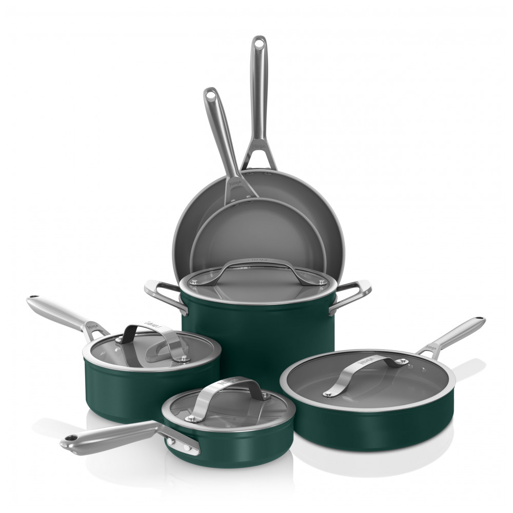 Conjunto de Panelas Ninja NeverStick Ceramic Pro 10 Peças Verde British Racing Green Revestimento Cerâmico Inox Indução