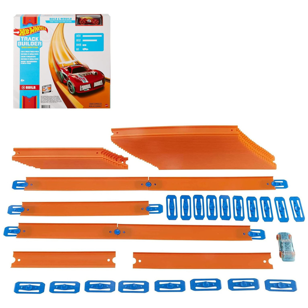 O Track Builder Mega Track Pack é um conjunto de pistas incrível que oferece 12,16 metros de pista para as crianças construírem seu próprio mundo épico de Track Builder. Com 43 conectores fáceis de conectar, o conjunto permite que as crianças personalizem sua pista com acessórios perfeitos. Além disso, o conjunto inclui um carro Hot Wheels para começar a diversão imediatamente. O Mega Track Pack pode ser conectado a outros conjuntos no sistema Track Builder vendidos separadamente para criar acrobacias, correr com amigos e aprimorar a personalização. É uma ótima adição aos conjuntos existentes do Track Builder.