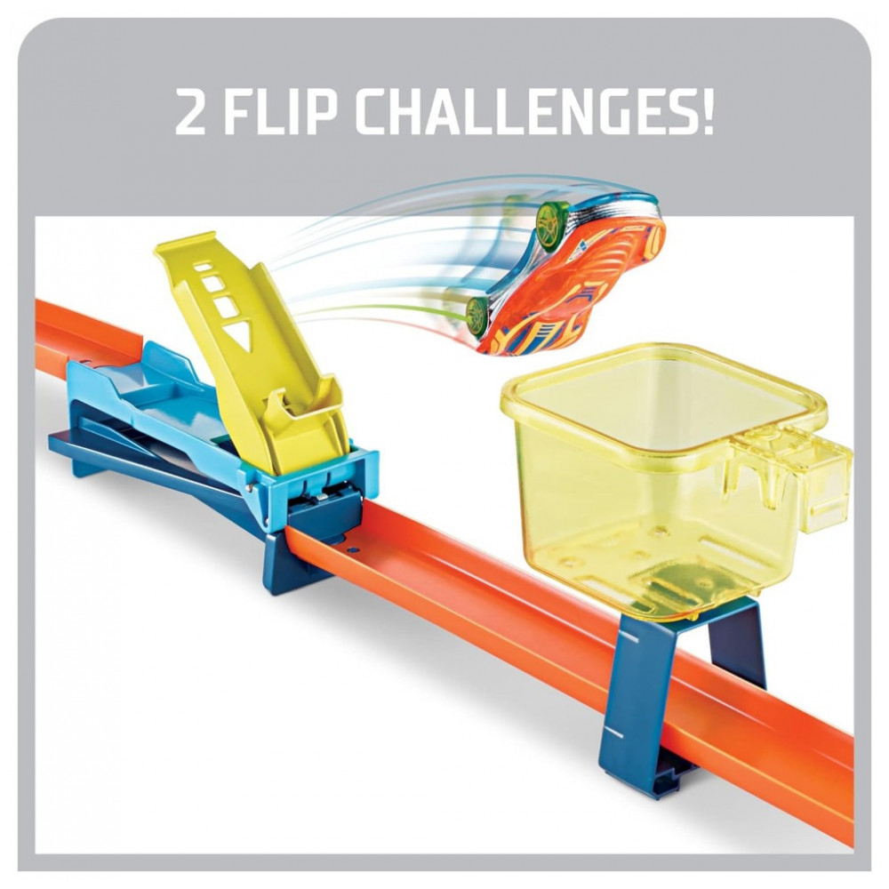O kit de loop inclui um carro fundido 164, bem como uma pista estendida para uma experiência completa de acrobacias