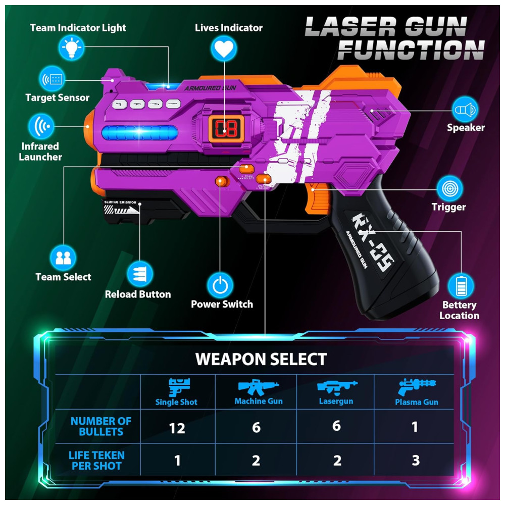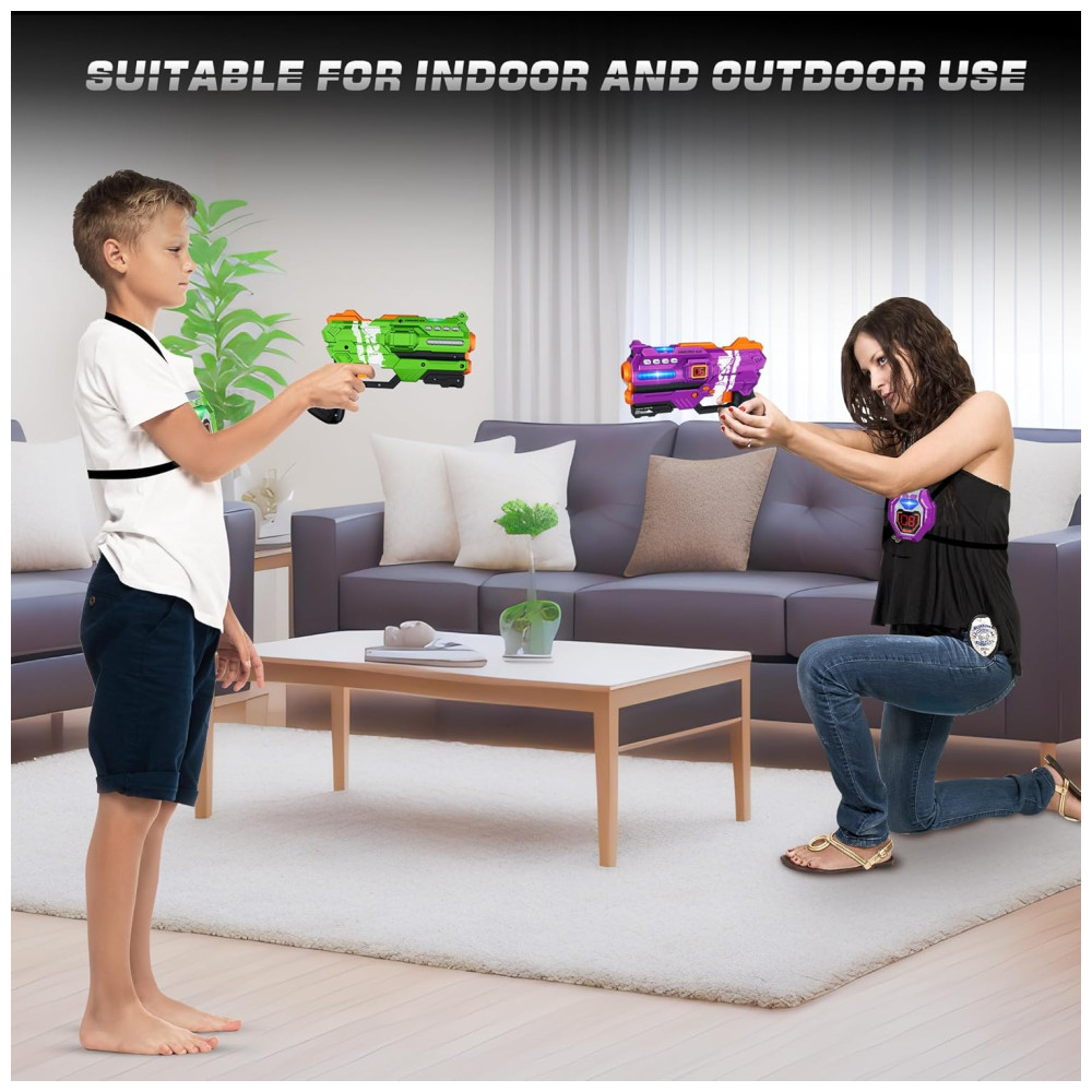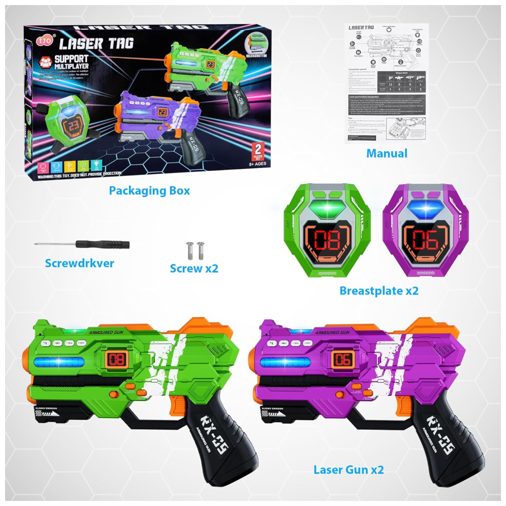 Conjunto de Pistola de Brinquedo com Laser Tag 2 Armas e 2 Coletes que Exibe a Pontuação Digital para Crianças e Adultos IJO Verde e Roxo