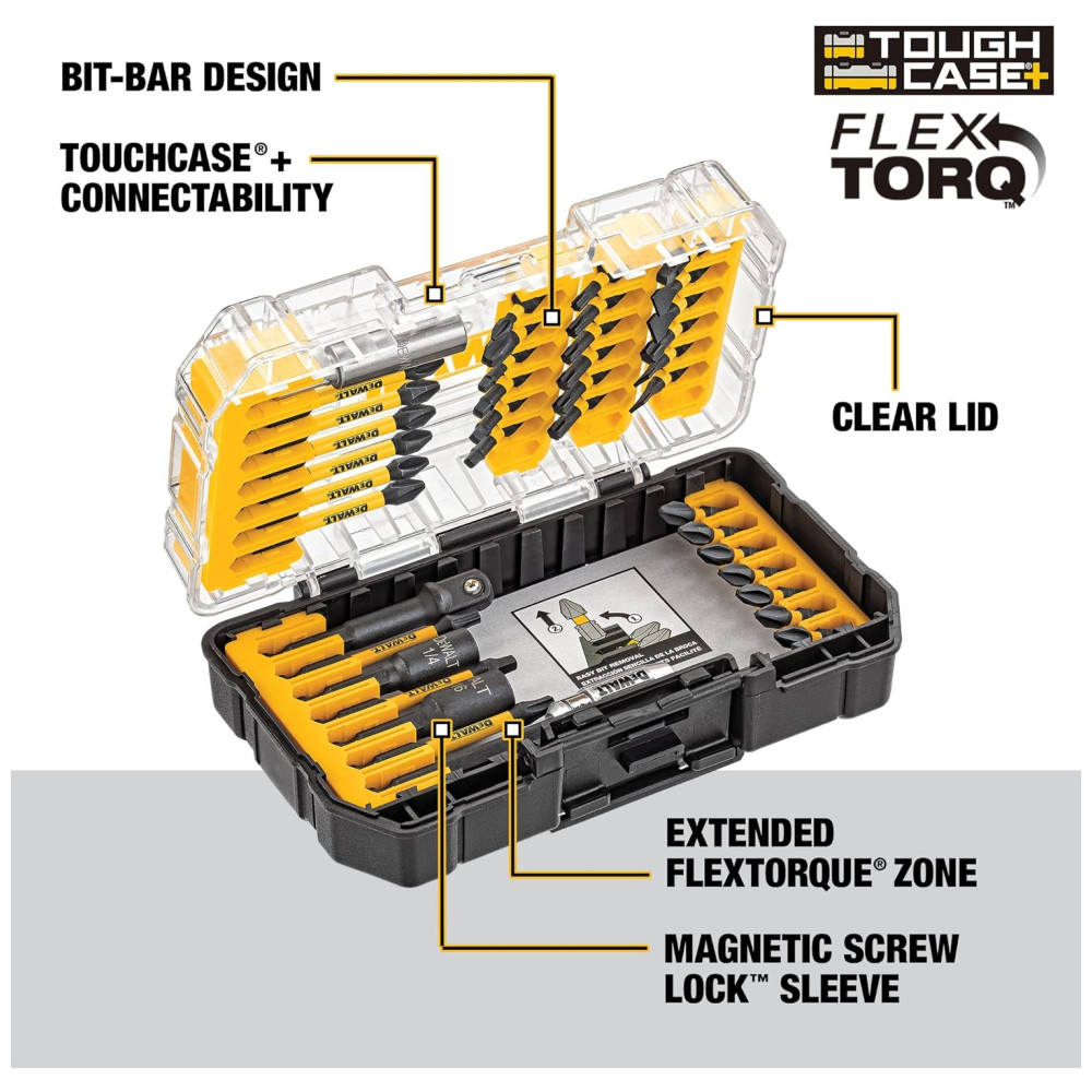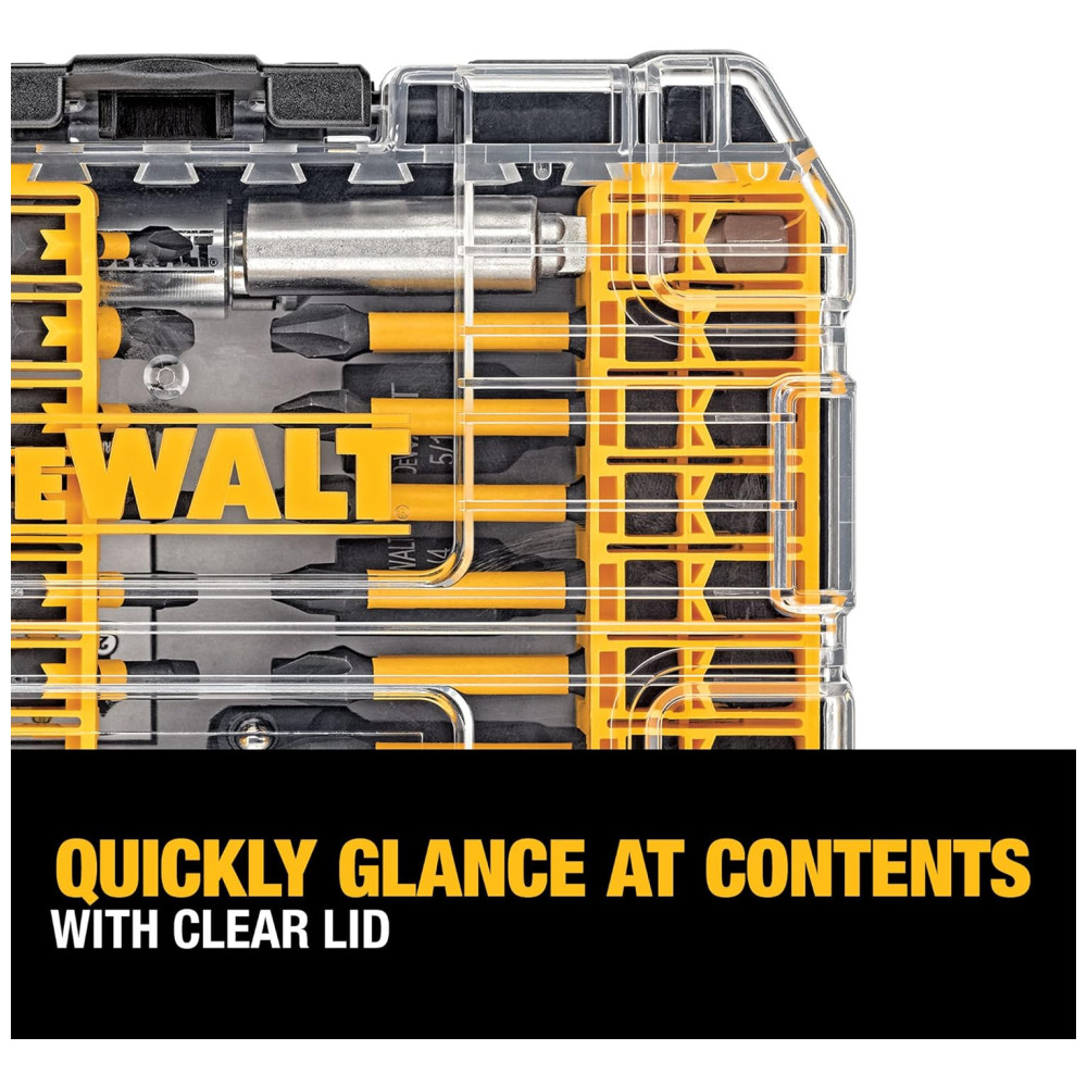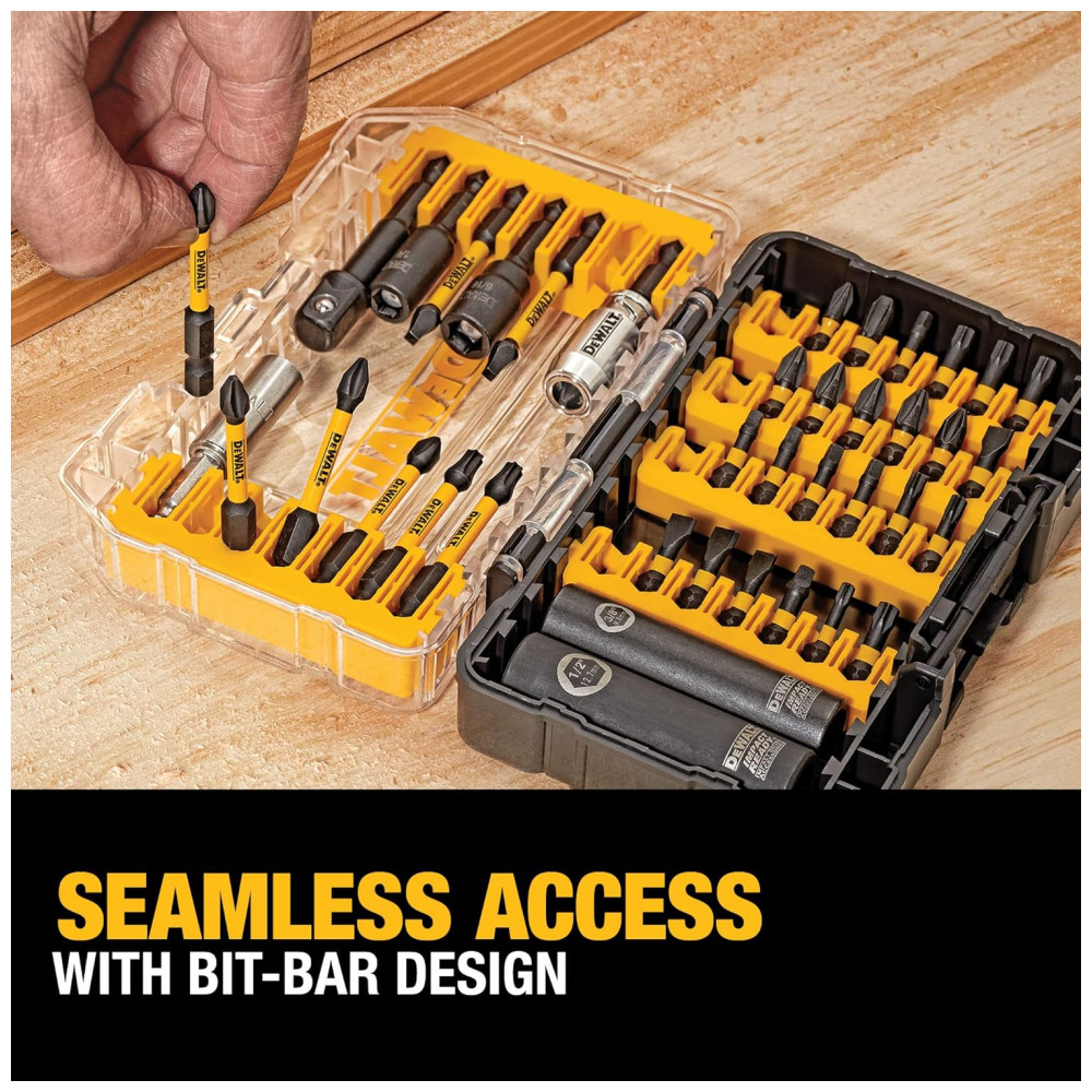 O design de barra de bits patenteado do conjunto de bits DEWALT permite fácil remoção de bits e colocação personalizável