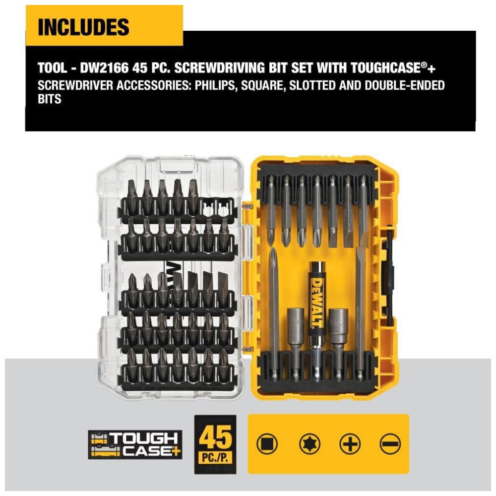 Conjunto de Pontas de Chave de Fenda com Estojo de zenamento 45 Peças DEWALT DW2166 Amarelo