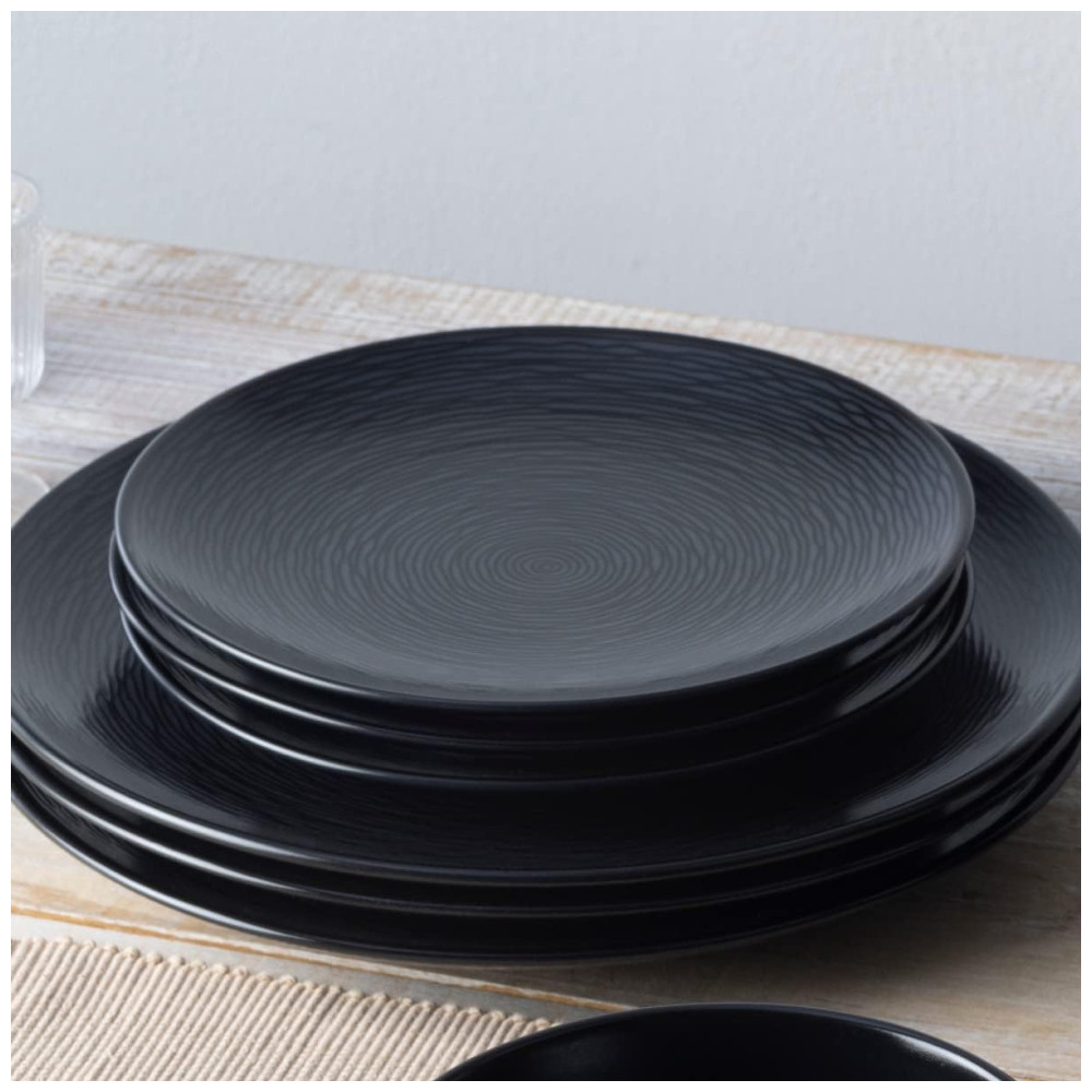 Conjunto de Pratos Coupe para Salada e Sobremesa com 4 Peças Formato Redondo Material de Porcelana e Designer Moderno Noritake 43817-405D Preto
