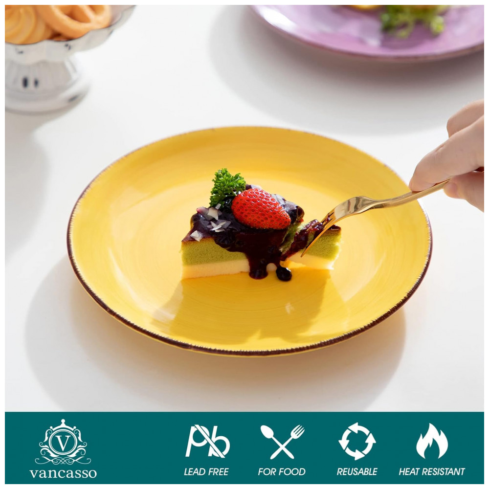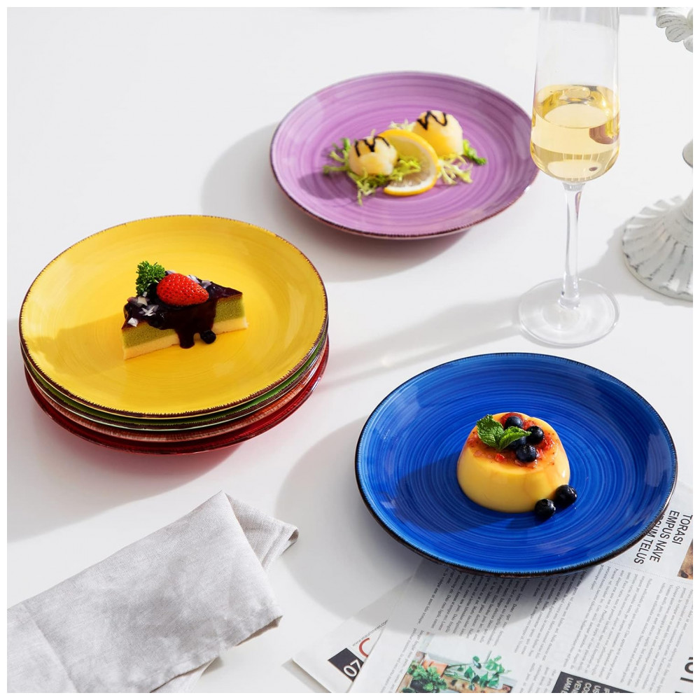 Conjunto de Pratos de Sobremesa 6 Un em Cerâmica vancasso Bonita Coloridos