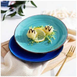 Decore sua mesa Esta placa de salada é caracterizada por sua sofisticada cor azul e até esmalte brilhante. Dando uma impressão elegante, combina com a atmosfera natural moderna e rústica. Tudo tem um gosto melhor e o clima é melhor ao usar essas placas.