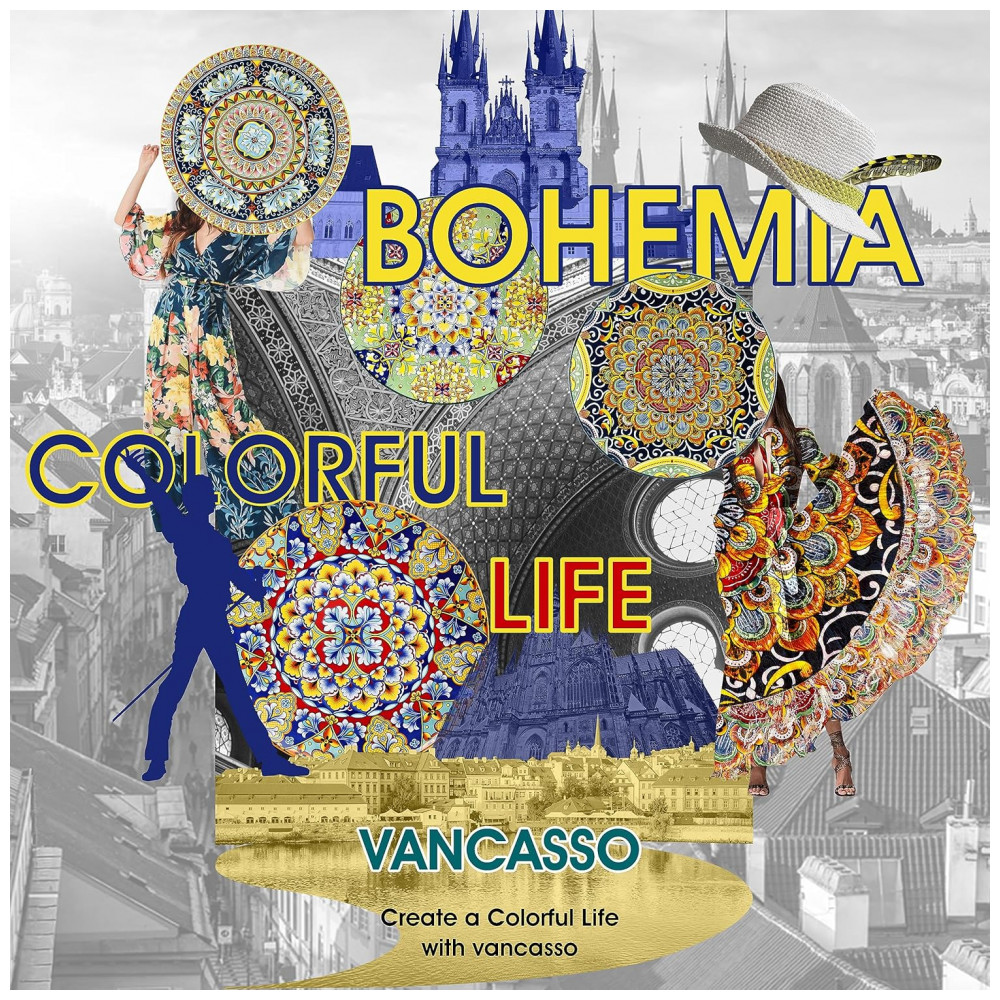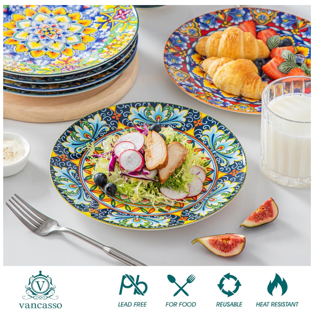 Designs vibrantes e coloridos: Os pratos de estilo boêmio de Vancasso apresentam designs encantadores e intrincados que capturam a essência de espírito livre da cultura boêmia. As cores vivas e os padrões artísticos evocam uma sensação de alegria e positividade, aprimorando sua experiência gastronômica com uma explosão de energia e felicidade.