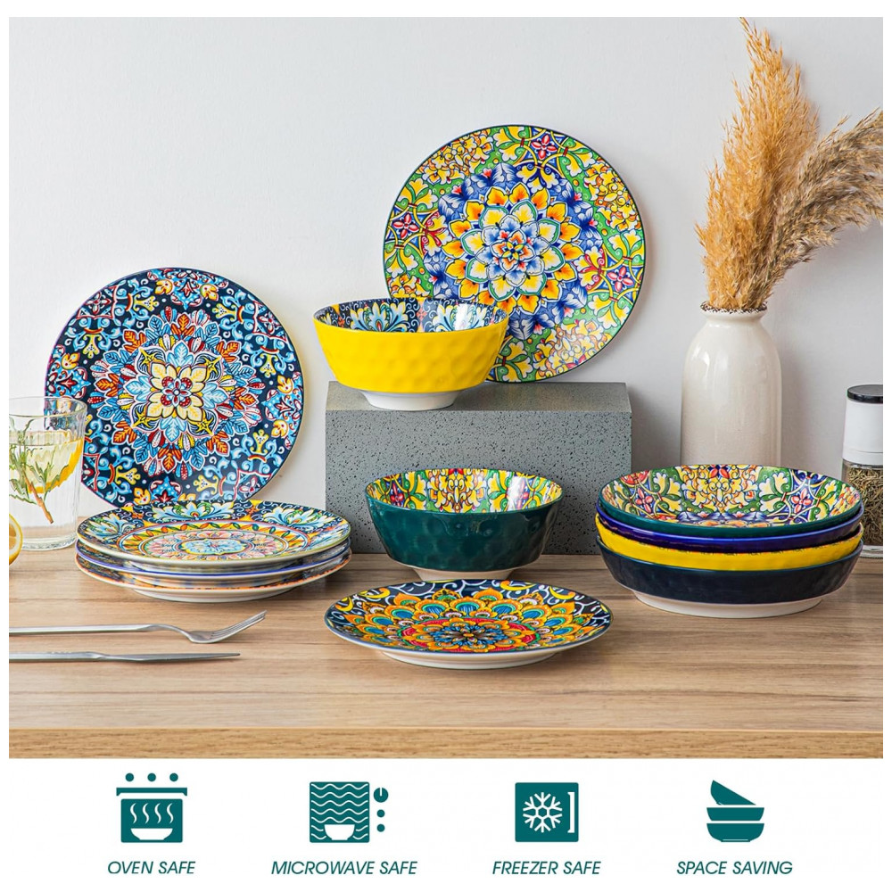 Artesanato de alta qualidade: O conjunto de placas de cerâmica é meticulosamente trabalhado com cerâmica durável de alta qualidade, garantindo durabilidade e resistência duradoura a lascas ou quebras. atraente.
