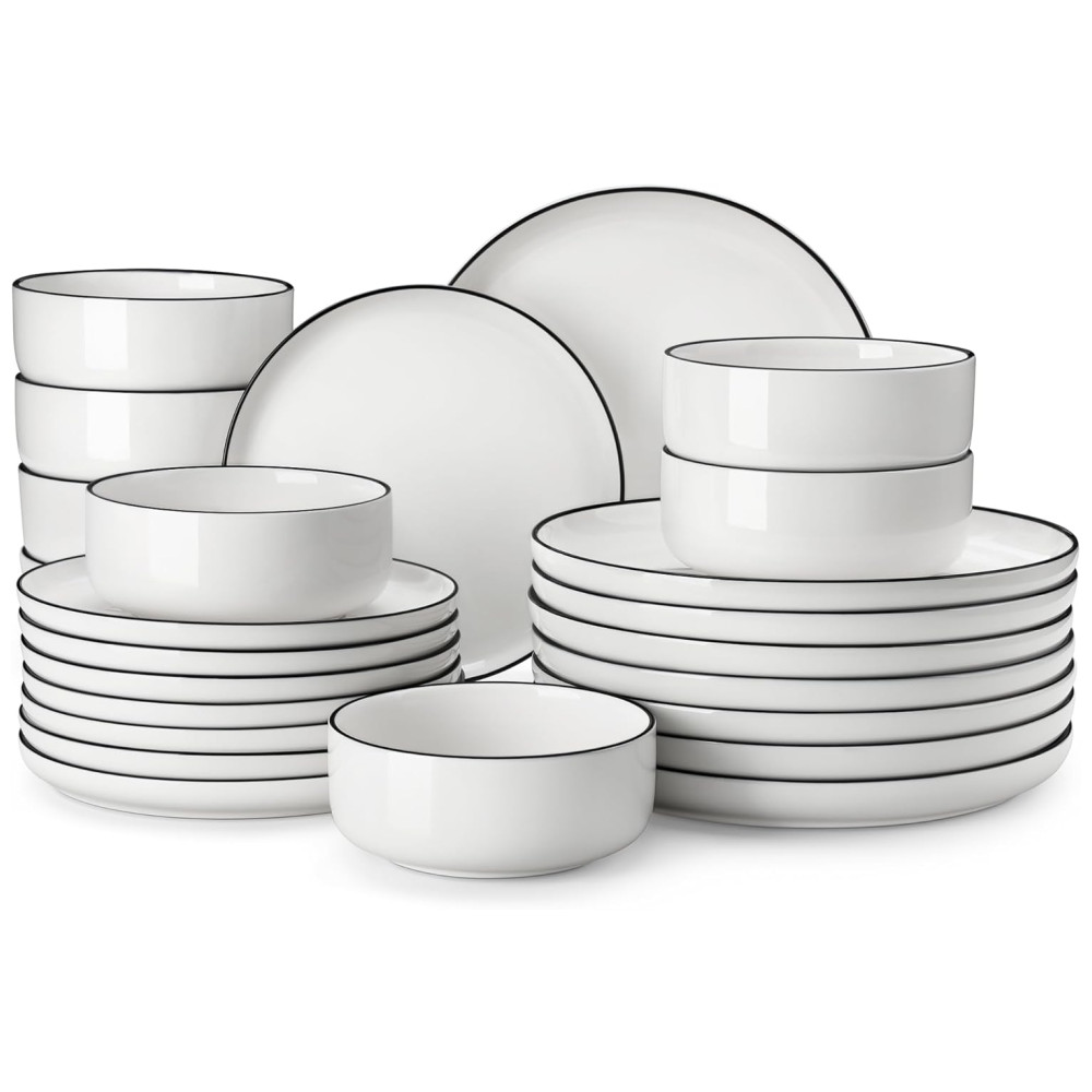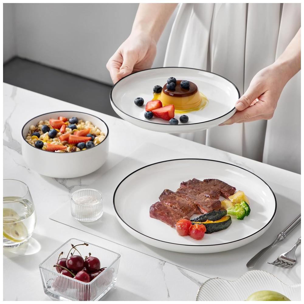 Receba em casa um conjunto de jantar ideal para famílias grandes, casais ou solteiros. Esse conjunto de 24 peças inclui 8 pratos de jantar de 26 cm, 8 pratos de salada de 21 cm e 8 tigelas de cereal de 769 ml. Feitos em porcelana ORC de alta qualidade, esse conjunto é altamente durável e resistente a riscos e altas temperaturas. Com tecnologia GLIDECOAT, a superfície lisa e resistente a manchas facilita a limpeza. Além disso, é livre de chumbo, garantindo segurança em todas as refeições. Pode ser utilizado tanto no micro-ondas quanto na lava-louças. O design moderno e minimalista permite empilhar as peças de forma eficiente, otimizando espaço no armário. Renove sua cozinha com praticidade e estilo!