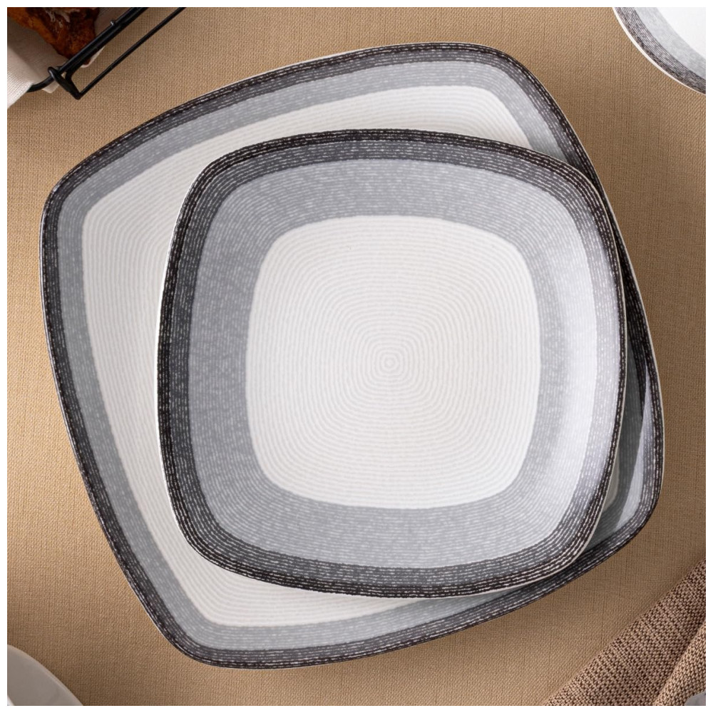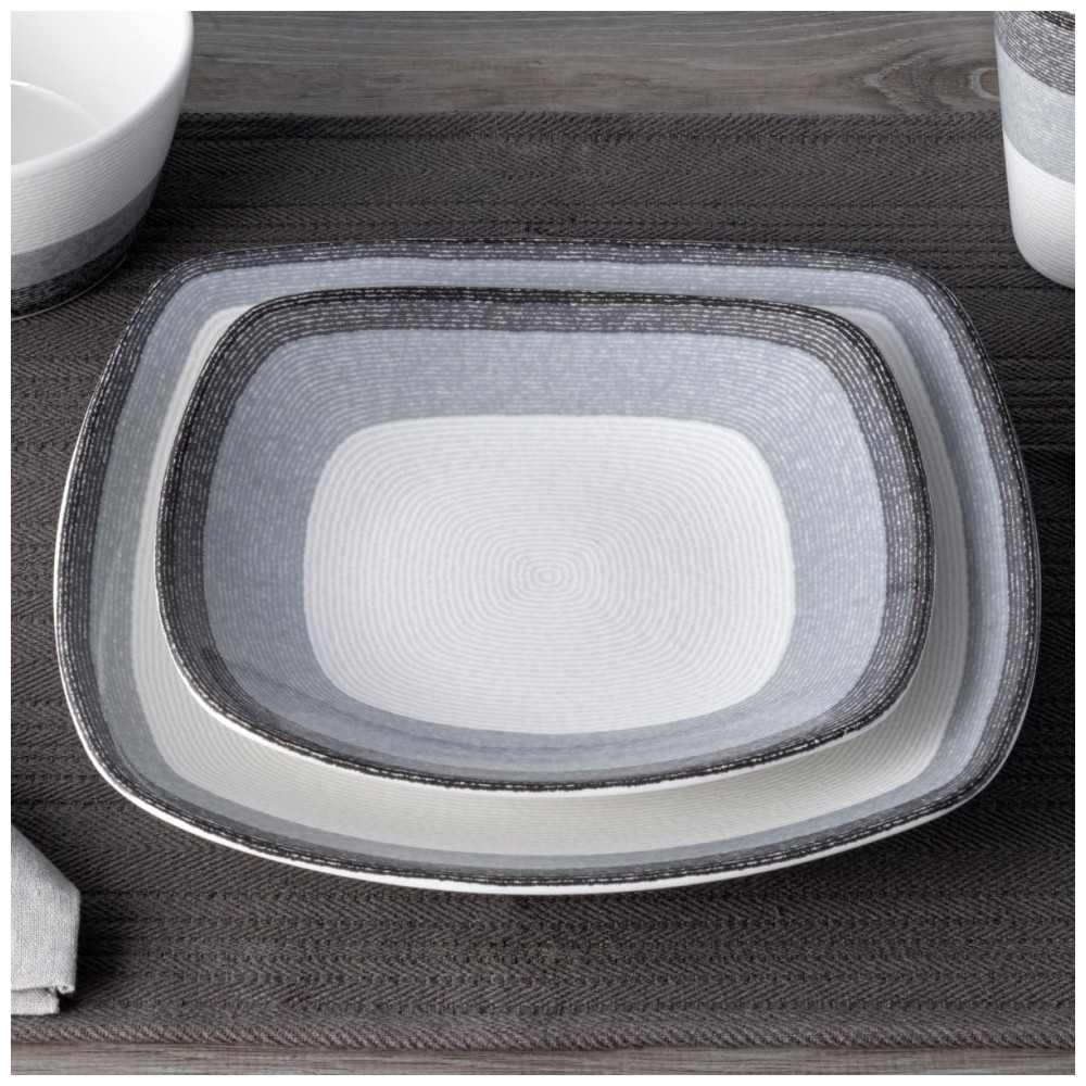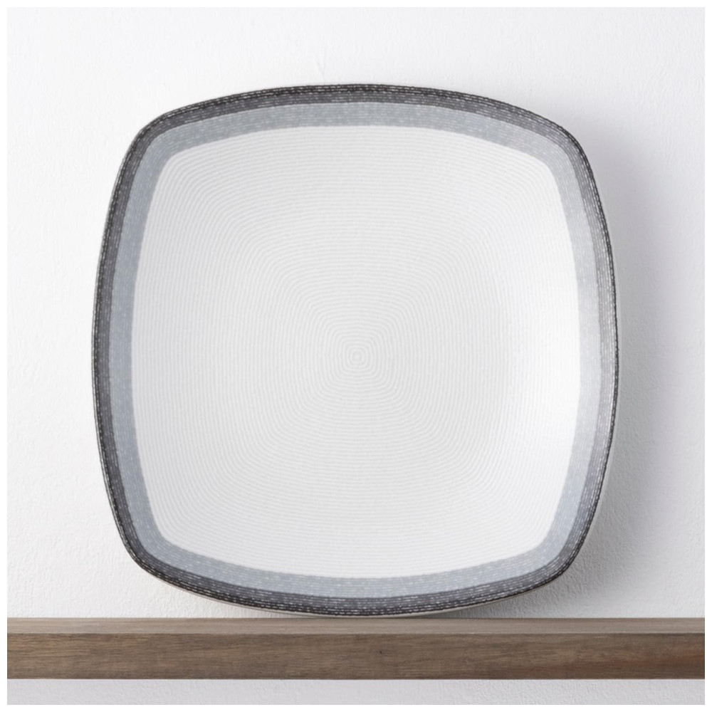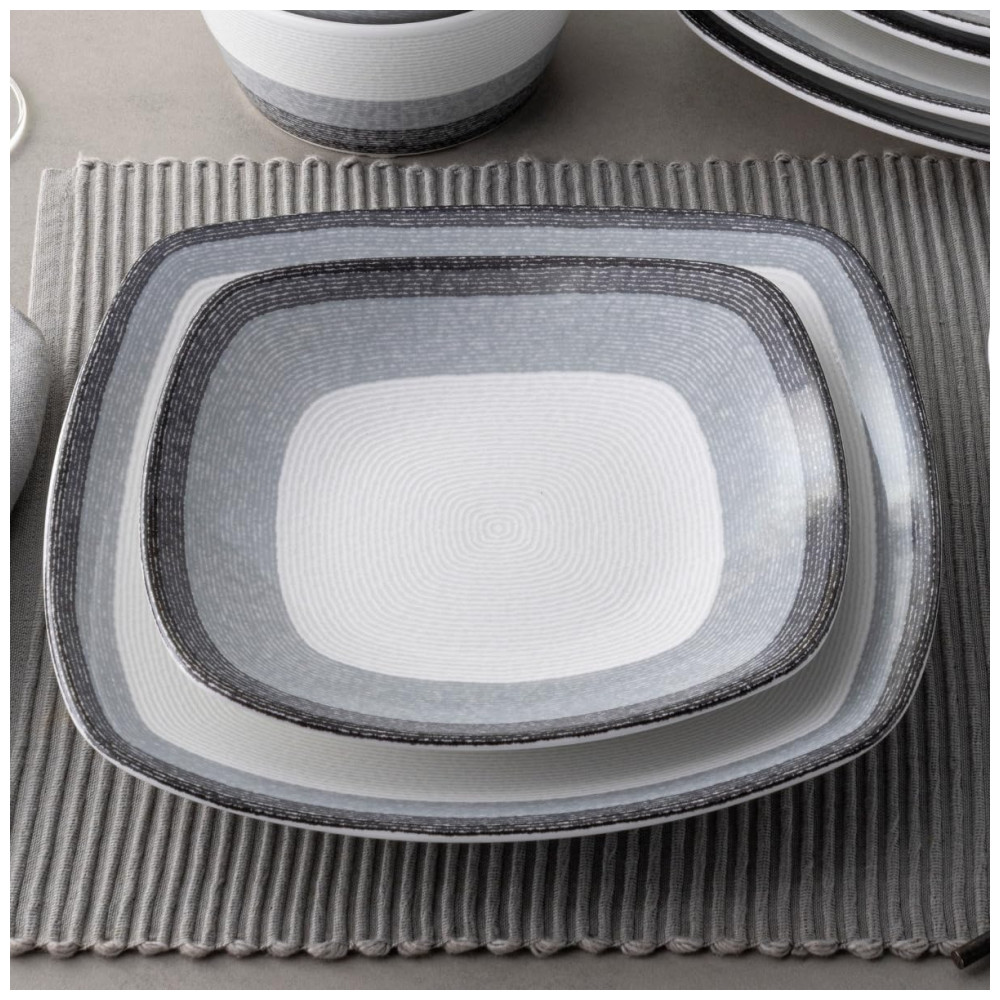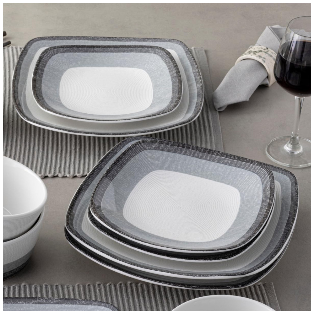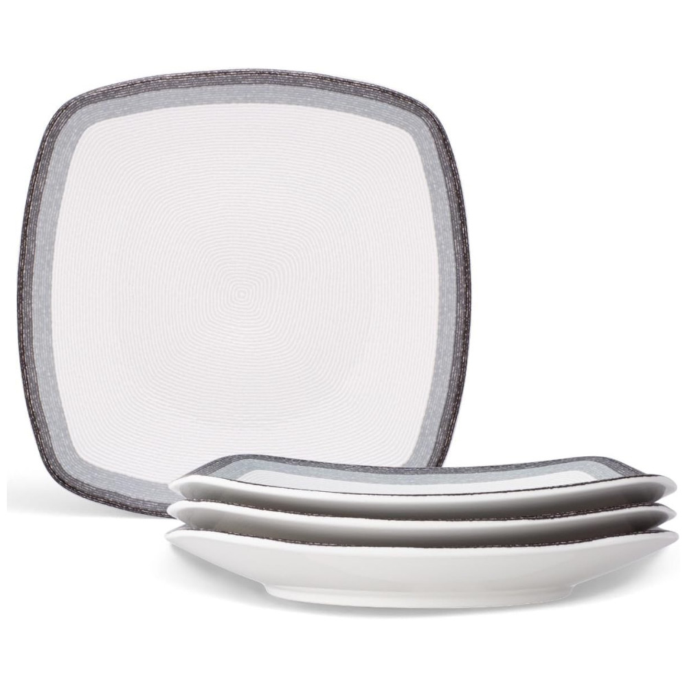 Conjunto de Pratos para Jantar com 4 Peças Formato Quadrado Design Moderno e Material de Porcelana Noritake G038-586DCinza e Branco