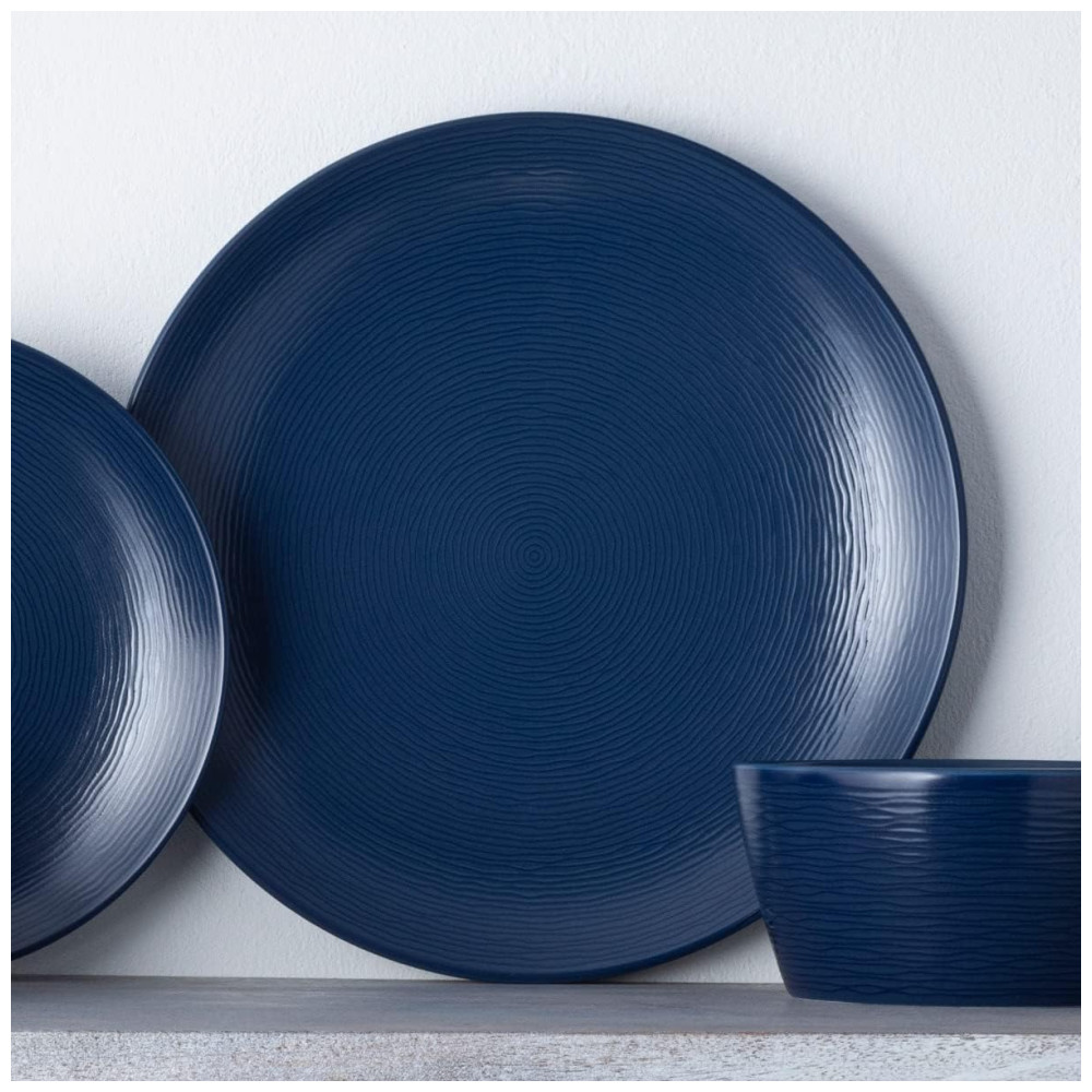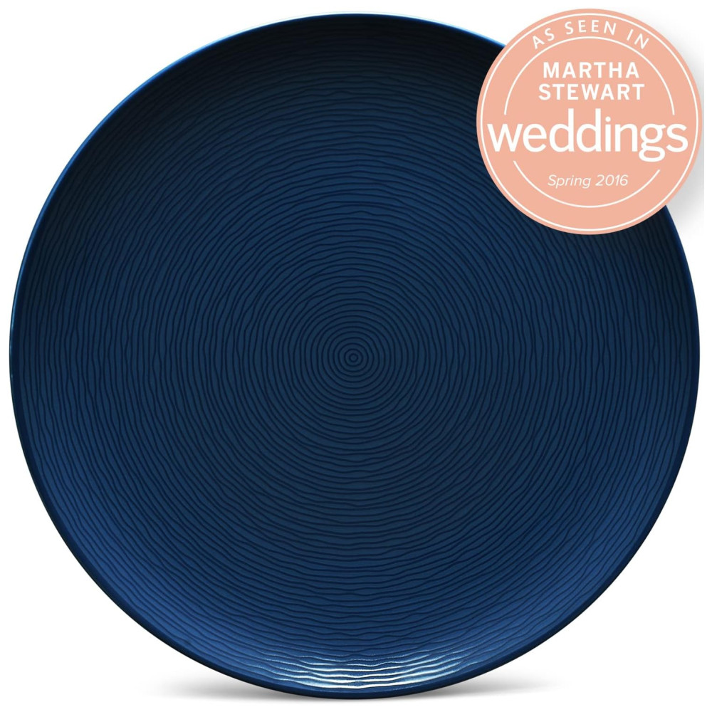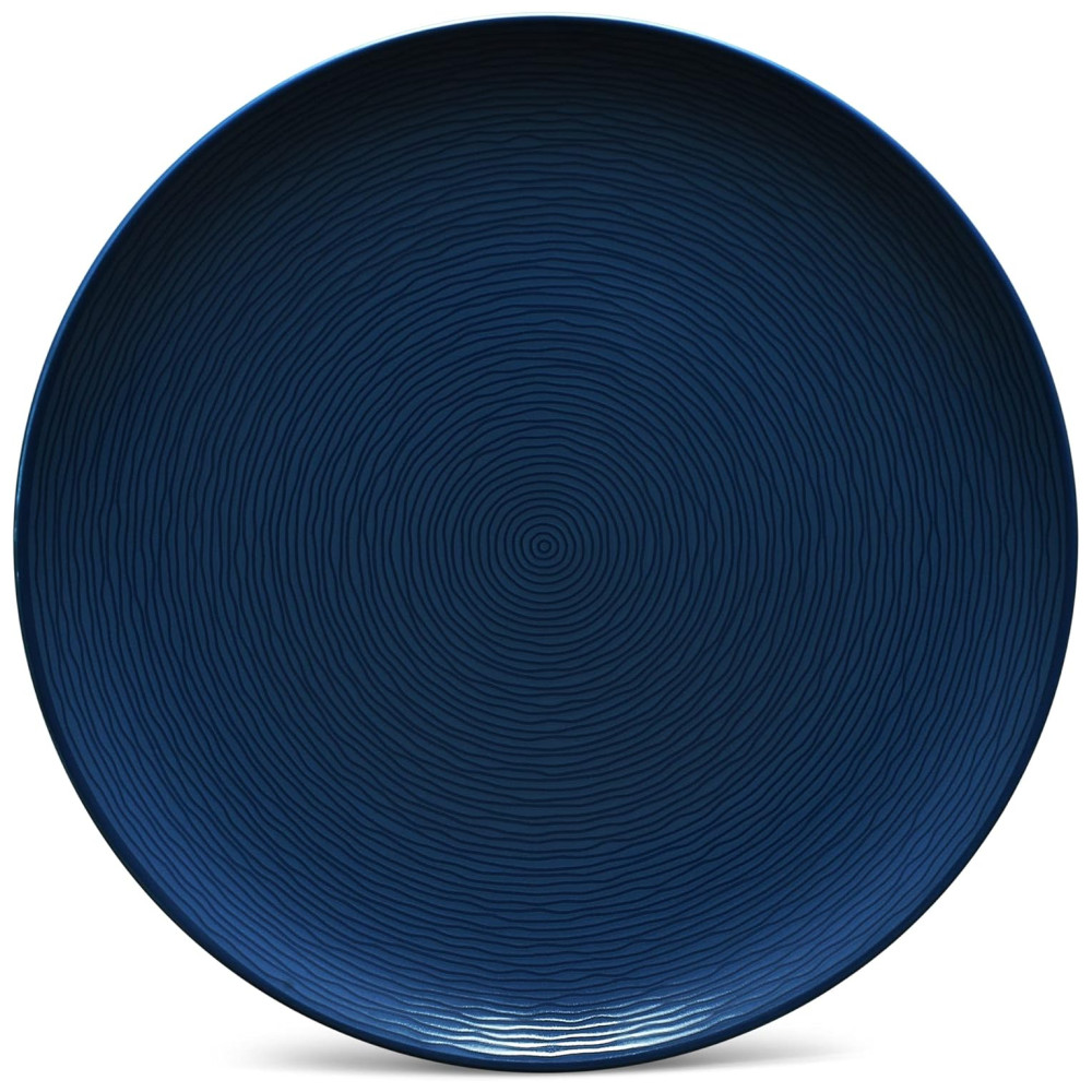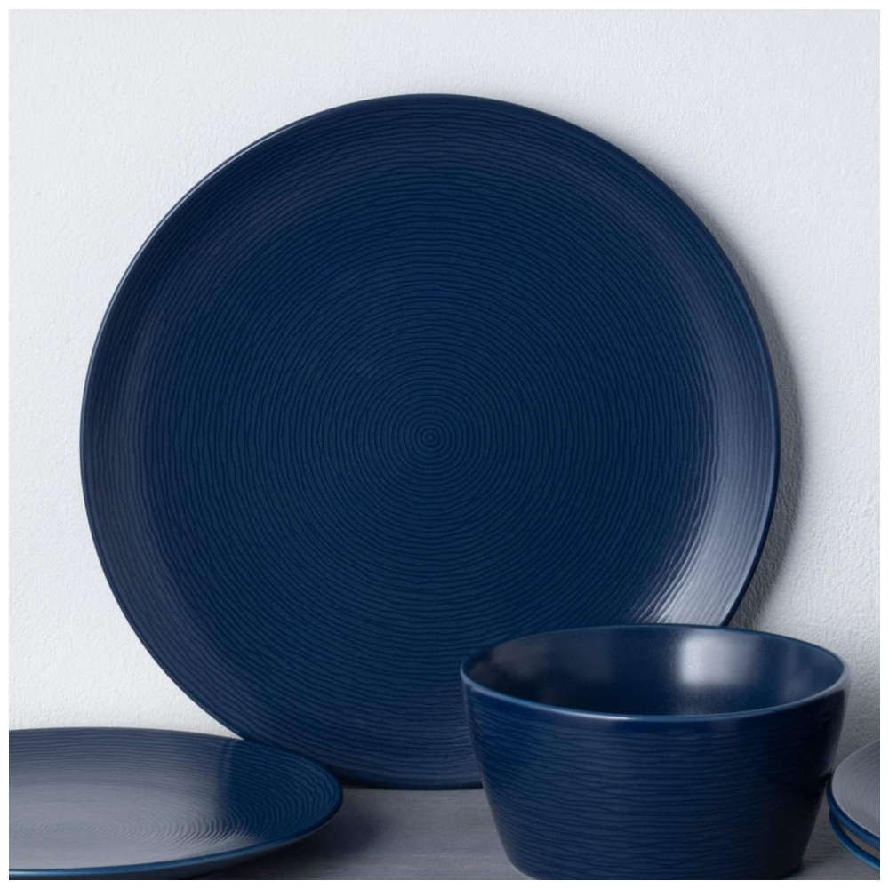 Conjunto de Pratos para Jantar com 4 Peças Formato Redondo Material de Porcelana e Designer em Círculos Concêntricos em Espiral Noritake 4397-406D Azul Marinho