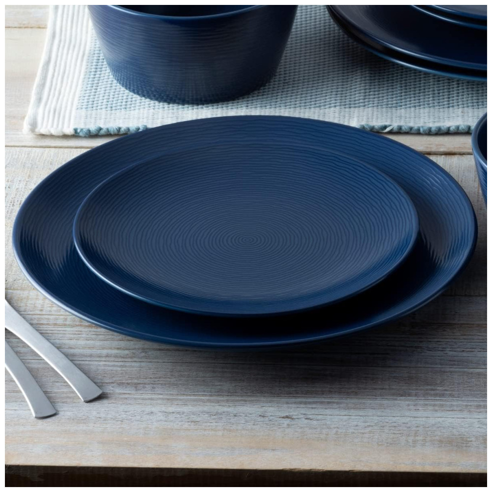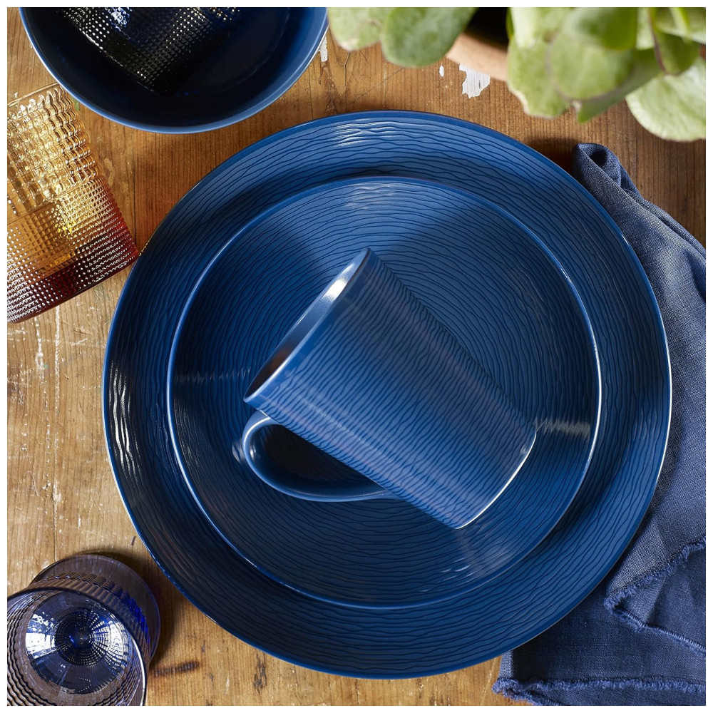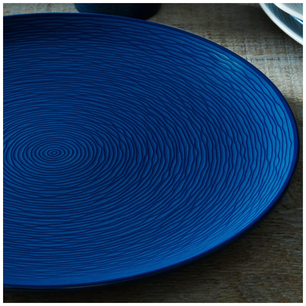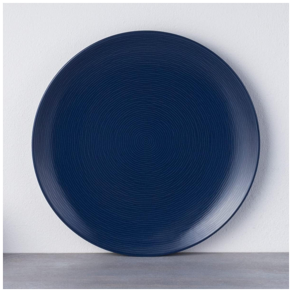 Conjunto de Pratos para Jantar com 4 Peças Formato Redondo Material de Porcelana e Designer em Círculos Concêntricos em Espiral Noritake 4397-406D Azul Marinho