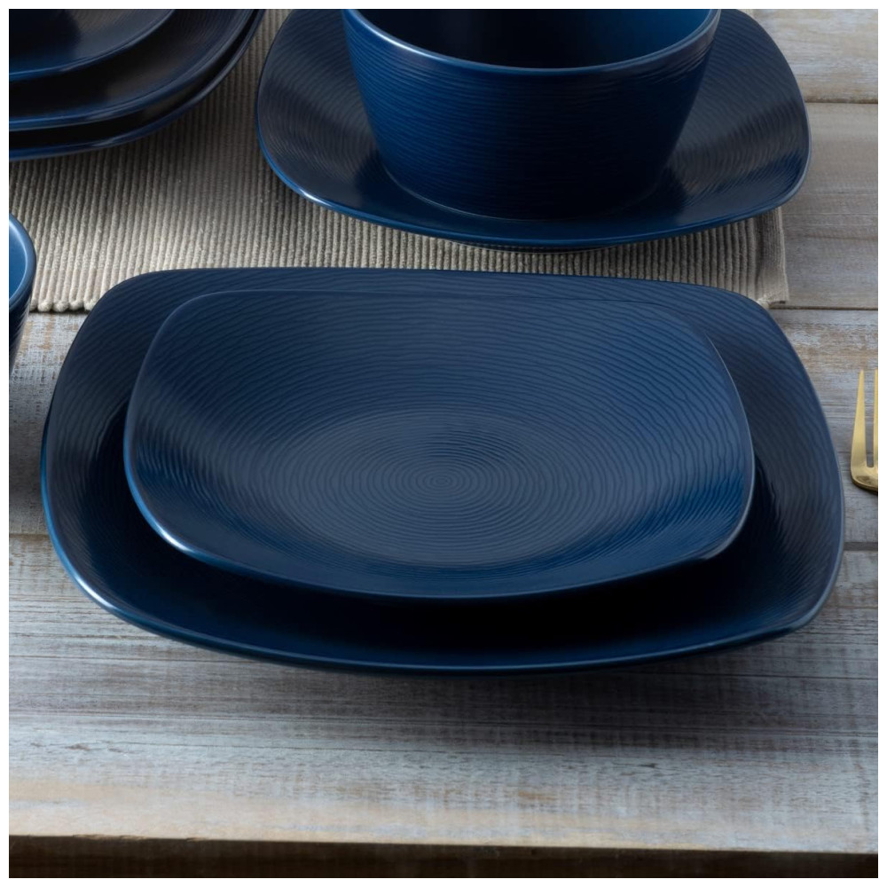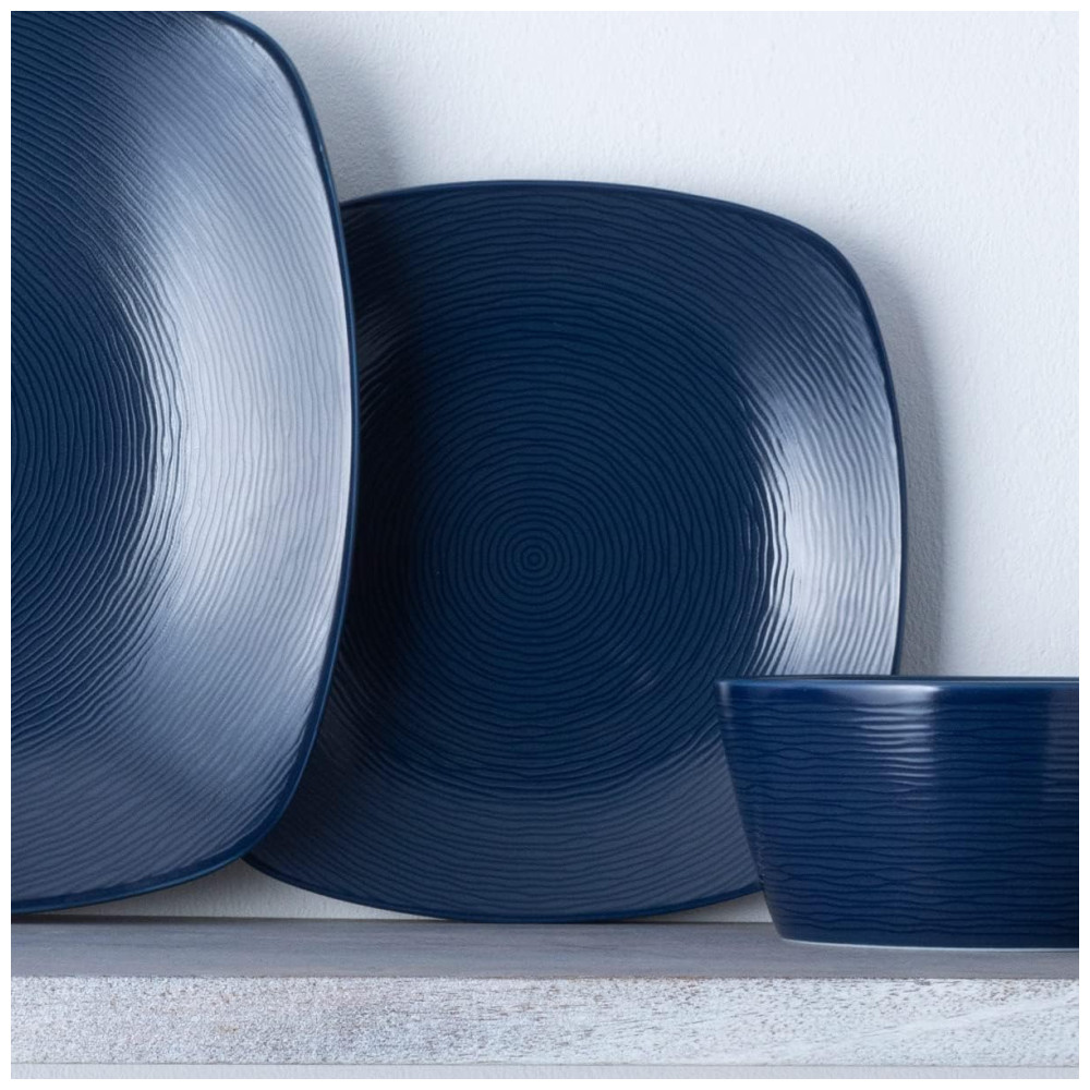 Apresentamos o conjunto de 4 pratos quadrados para salada/sobremesa Navy on Navy Swirl, com 21 cm de diâmetro. Feitos com porcelana de qualidade superior, esses pratos são uma adição elegante à sua mesa.