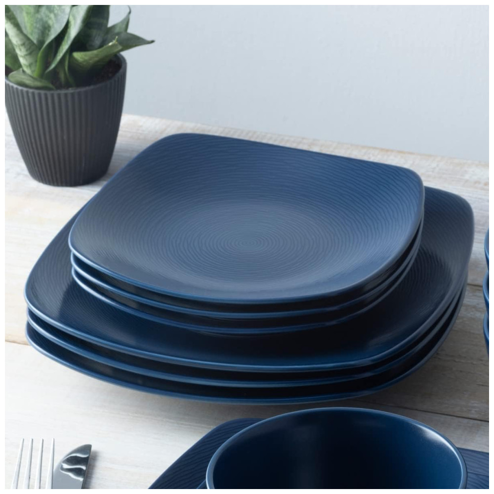 Conjunto de Pratos para Salada e Sobremesa com 4 Peças Formato Quadrado Material de Porcelana e Designer Moderno Noritake 4397-588D Azul Marinho