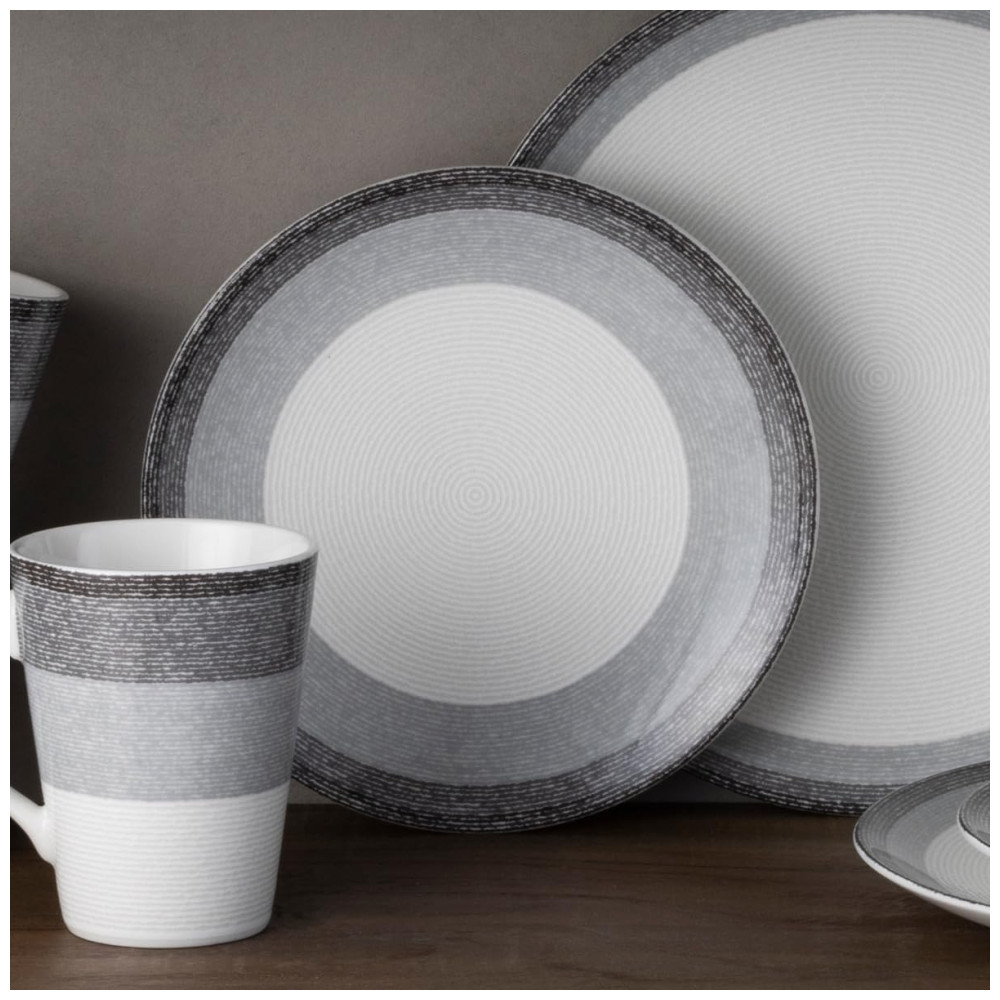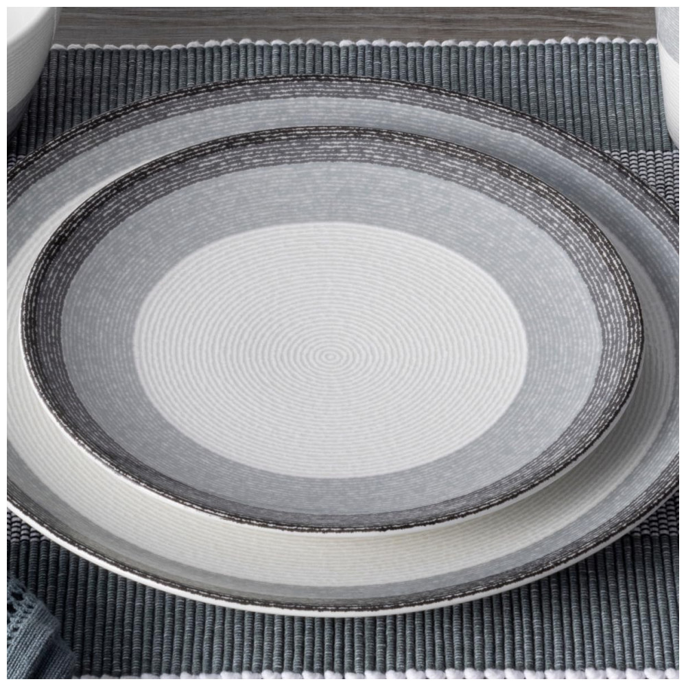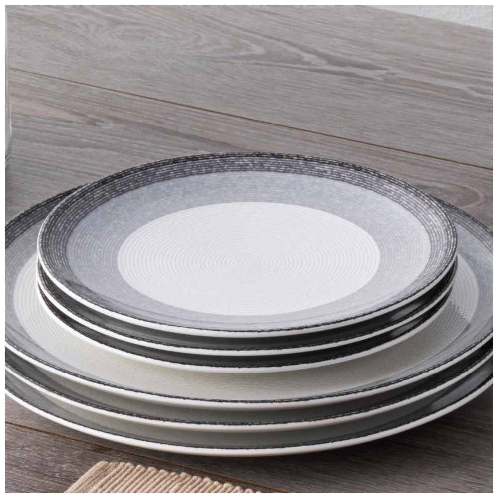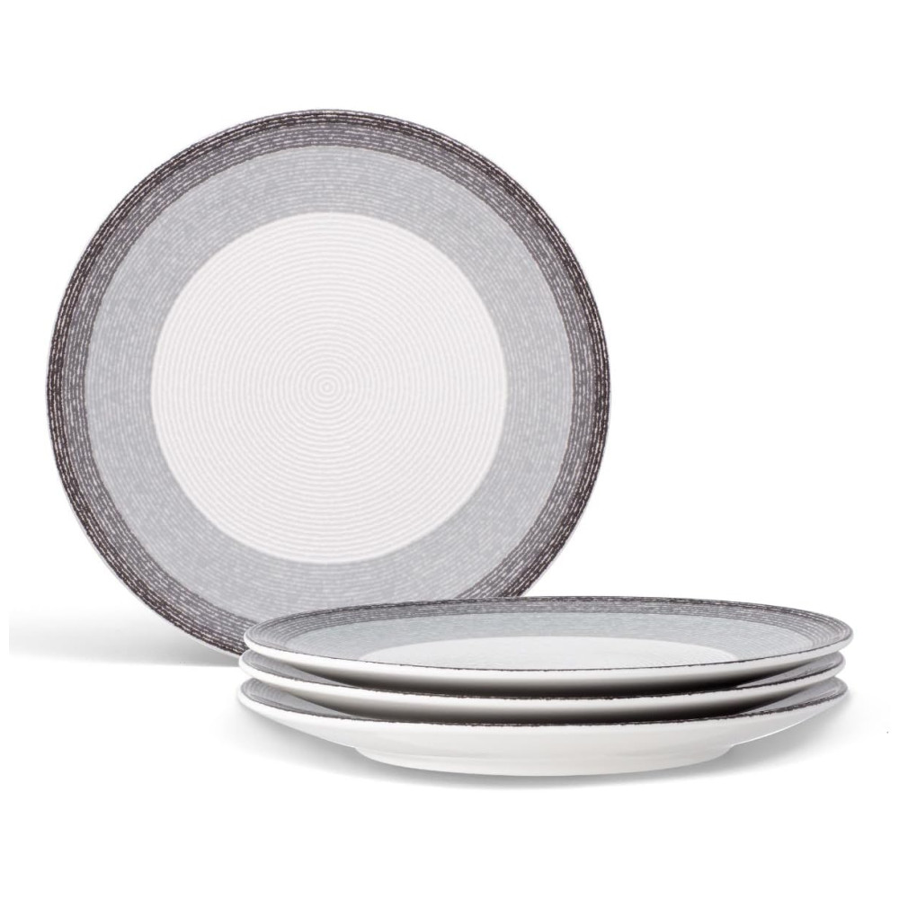 Conjunto de Pratos para Salada e Sobremesa com 4 Peças Formato Redondo e Design Moderno Noritake G038-405D Cinza e Branco